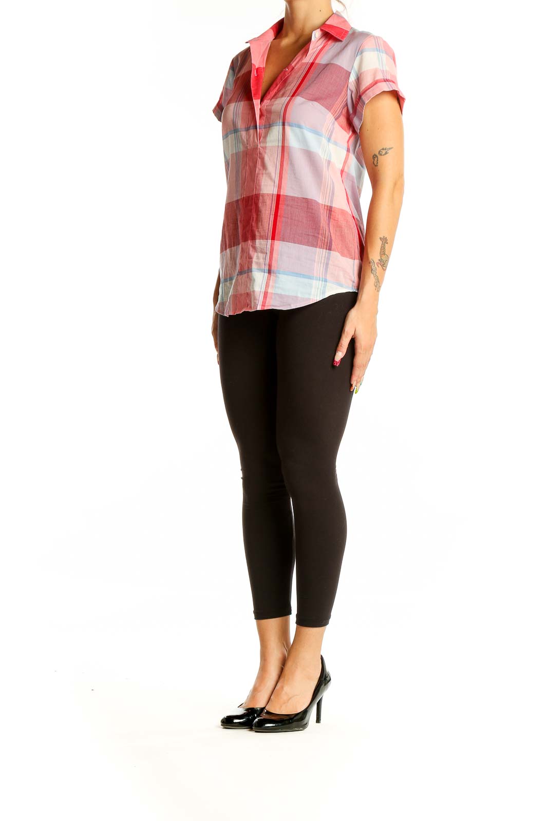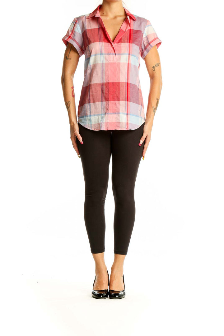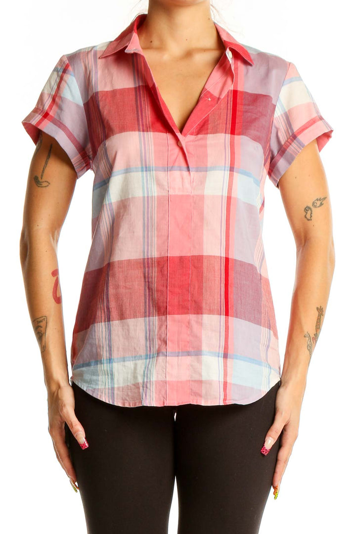 Elevate your casual wardrobe with this charming pink plaid short-sleeve shirt from J.Crew. Crafted from soft, breathable cotton, this top features a classic plaid pattern in shades of pink, red, light blue, and white, perfect for adding a pop of color to your outfit. The relaxed fit and collared neckline offer both comfort and style, making it ideal for warm weather or layering.