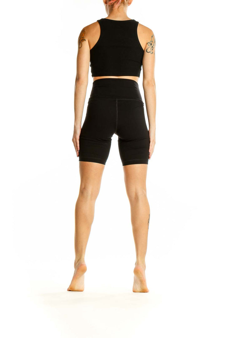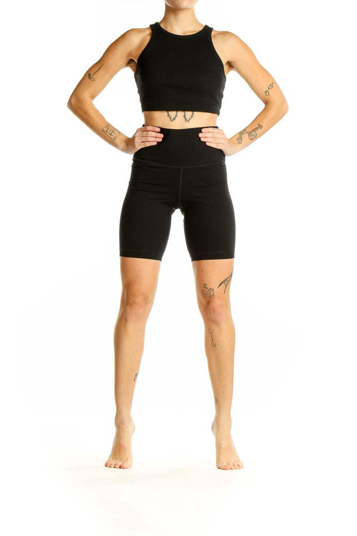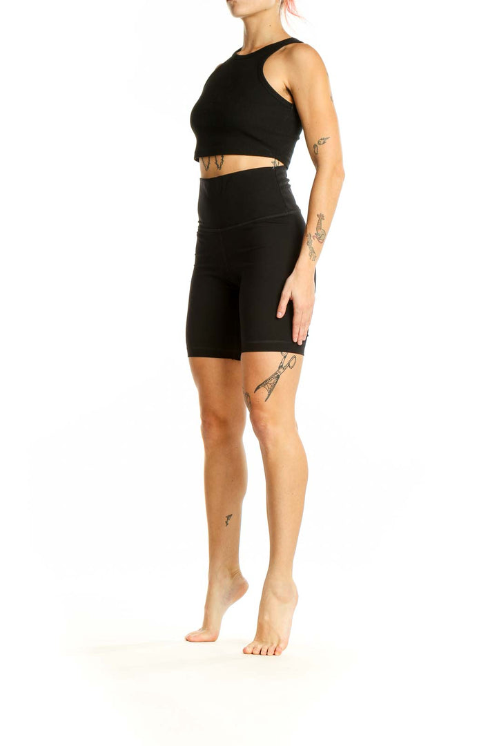 Elevate your athletic wardrobe with these sleek black high-waisted biker shorts from Everlane. Crafted from a premium blend of nylon and elastane, these shorts offer the perfect balance of comfort and performance. The high-waisted design provides excellent tummy control and a flattering silhouette, while the mid-thigh length offers ample coverage for various activities.