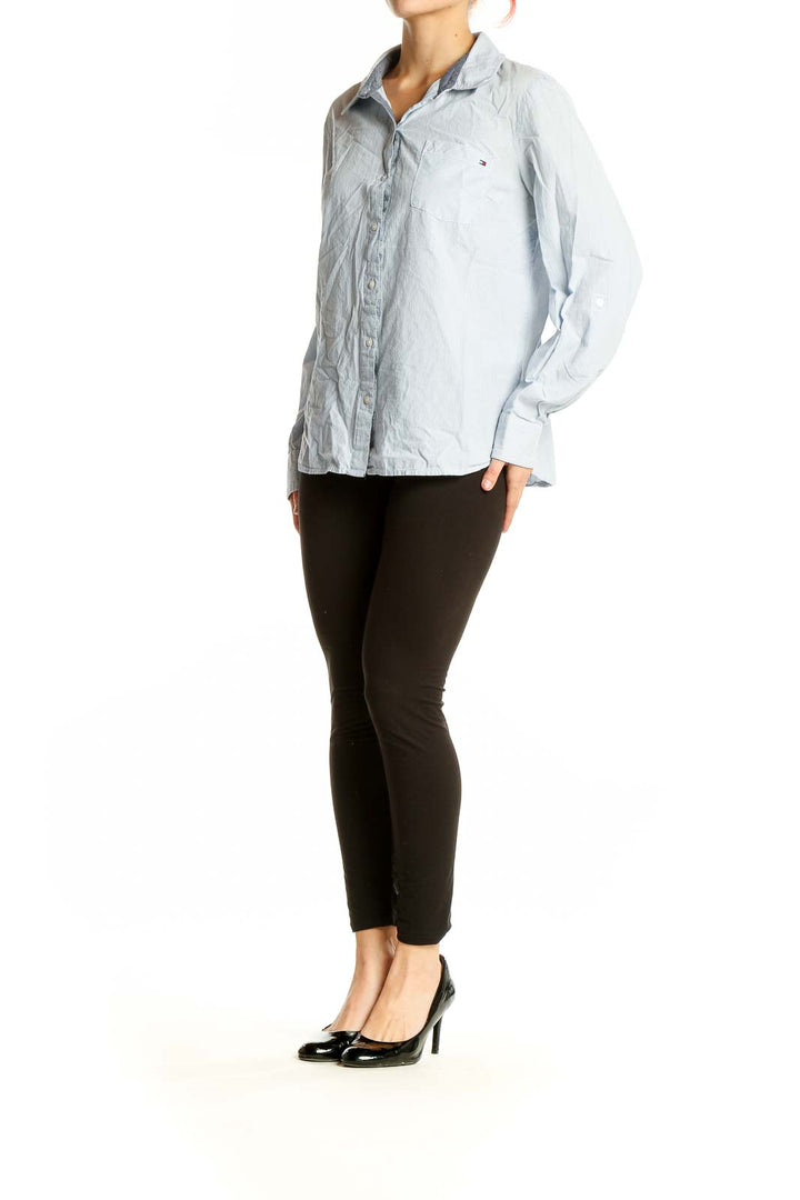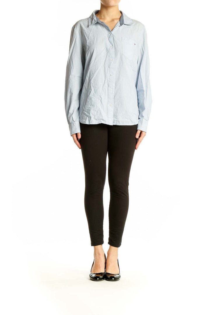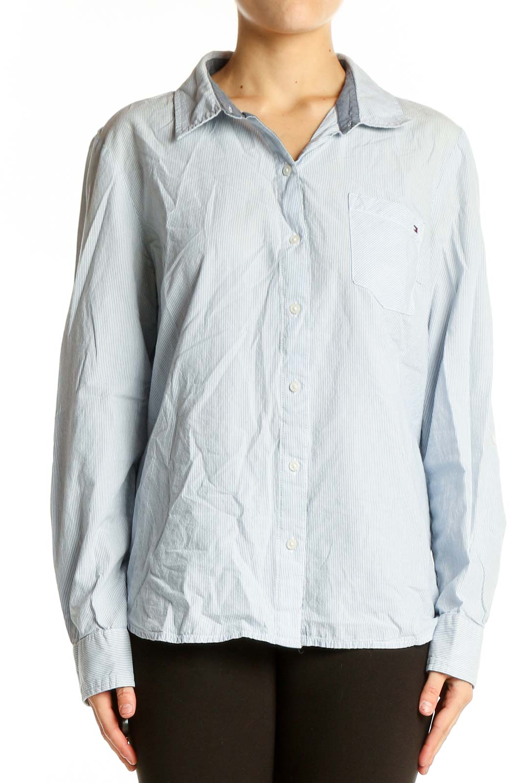 Elevate your casual wardrobe with this classic light blue striped cotton button-down shirt from Tommy Hilfiger. Perfect for both work and weekend wear, this versatile top features a timeless design with vertical pinstripes that add a touch of sophistication. The comfortable 100% cotton fabric ensures breathability and ease of movement throughout the day.