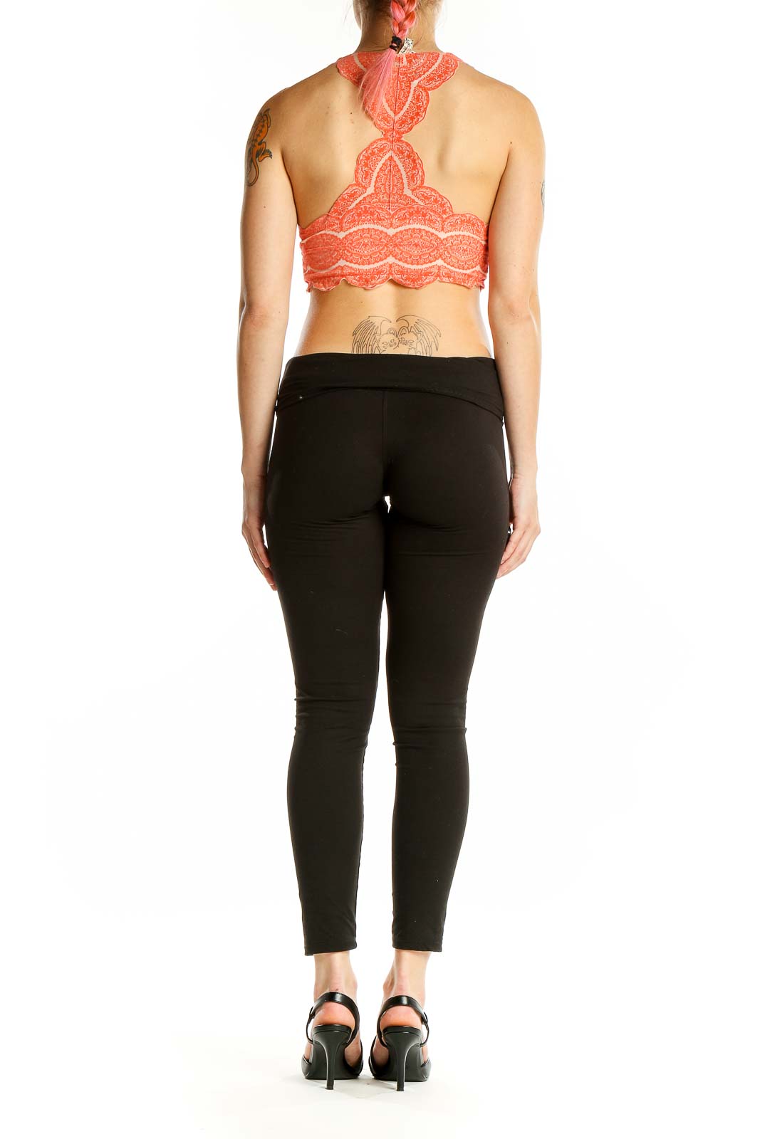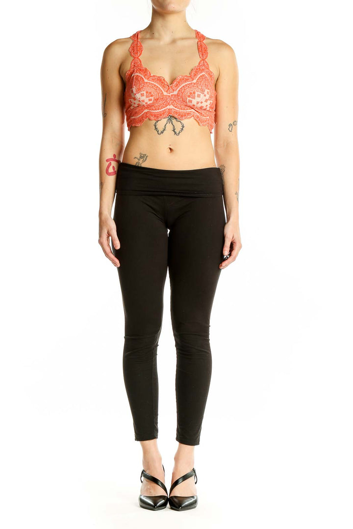 Back view of coral lace racerback bralette showing intricate lace pattern