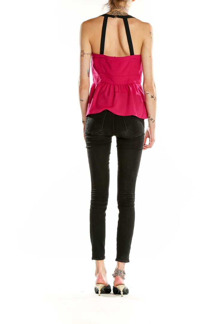 Back view of hot pink Parameter peplum top showing black cross-back straps