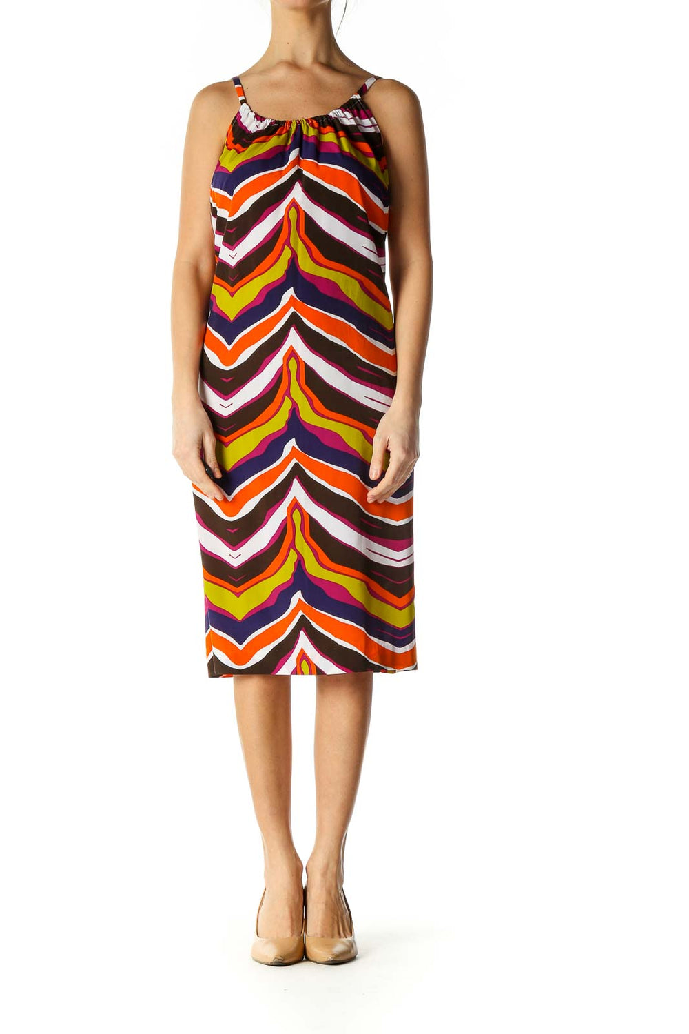 Orange Chevron Casual A-Line Dress
