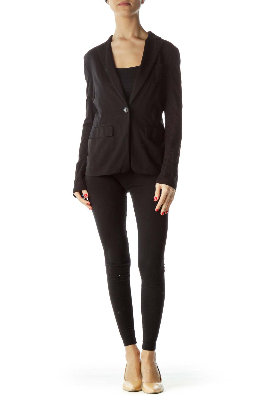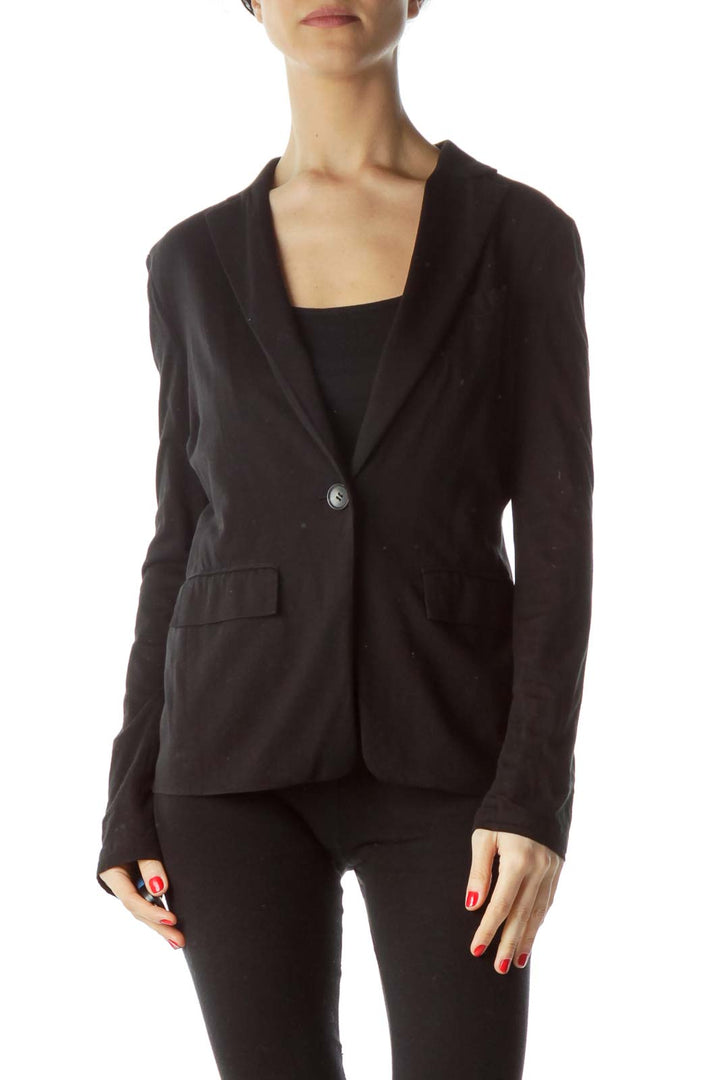 Elevate your wardrobe with this sophisticated black blazer from BCBG MaxAzria. Crafted with impeccable attention to detail, this tailored jacket features a classic single-button closure and a sleek silhouette that flatters any figure. The notched lapels and front flap pockets add a touch of timeless elegance, while the long sleeves with button cuffs offer a polished finish.