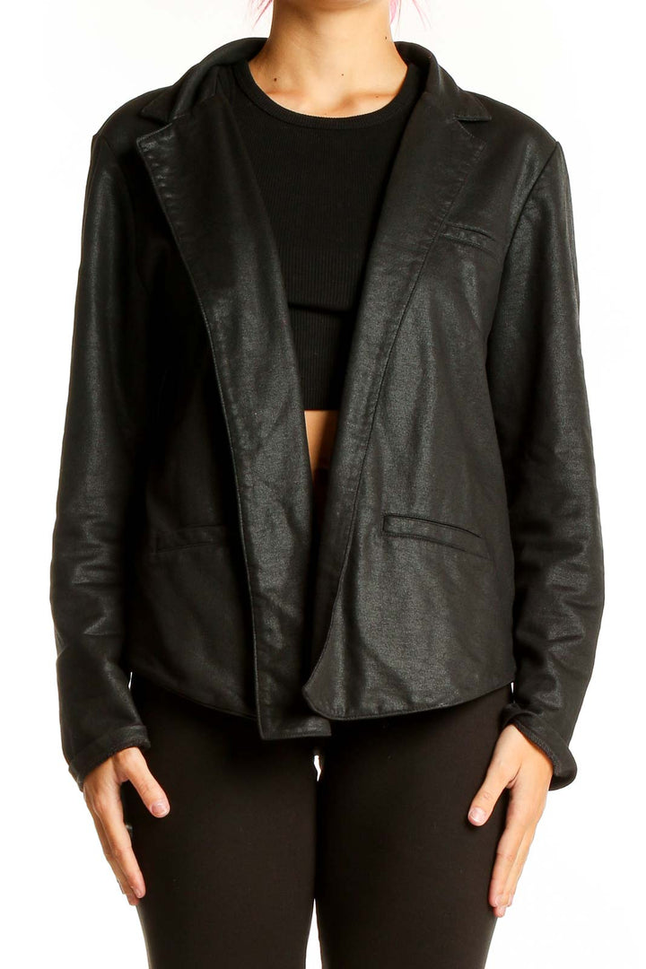 Elevate your casual style with this sleek black moto jacket from Lucky Brand. Crafted from a soft cotton blend, this jacket offers both comfort and edgy appeal. The classic moto design features a notched collar, asymmetrical front zip closure, and zippered pockets for a touch of urban flair. The fitted silhouette flatters your figure while allowing room for layering. With its versatile design, this jacket pairs perfectly with jeans for a casual look or can be dressed up for a night out. The excellent condition ensures you'll enjoy this timeless piece for seasons to come. Whether you're running errands or heading to a concert, this Lucky Brand moto jacket is the perfect finishing touch to any outfit.