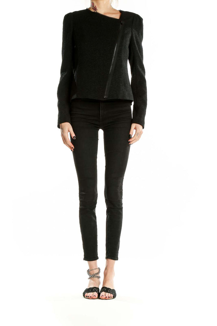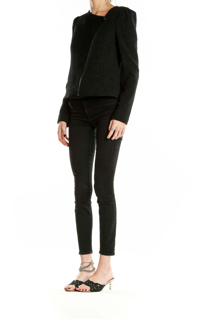 Elevate your outerwear collection with this sophisticated black jacket from Ann Taylor. Crafted from a luxurious blend of polyester and spandex, this piece offers both style and comfort. The textured fabric adds depth and interest to the classic black hue, making it a versatile addition to any wardrobe.