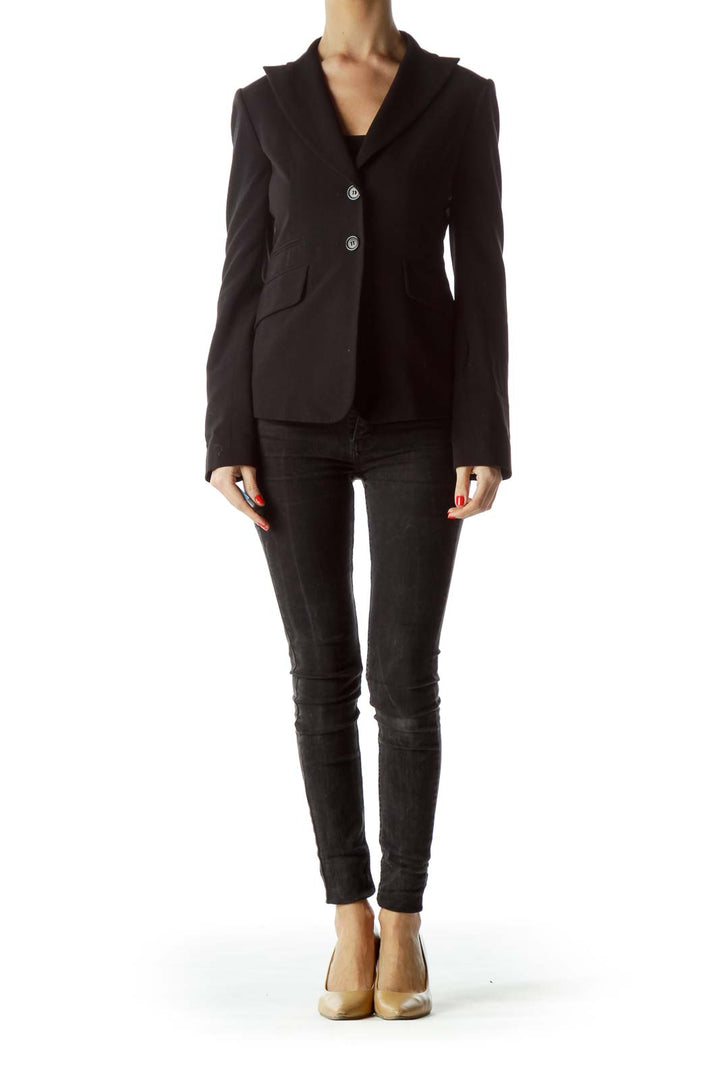 Crafted with precision, this blazer boasts clean lines and expertly placed darts for a flattering fit. The long sleeves with button cuffs allow for versatile styling, whether pushed up for a casual look or worn down for more formal occasions. Front flap pockets add functionality without compromising on style.