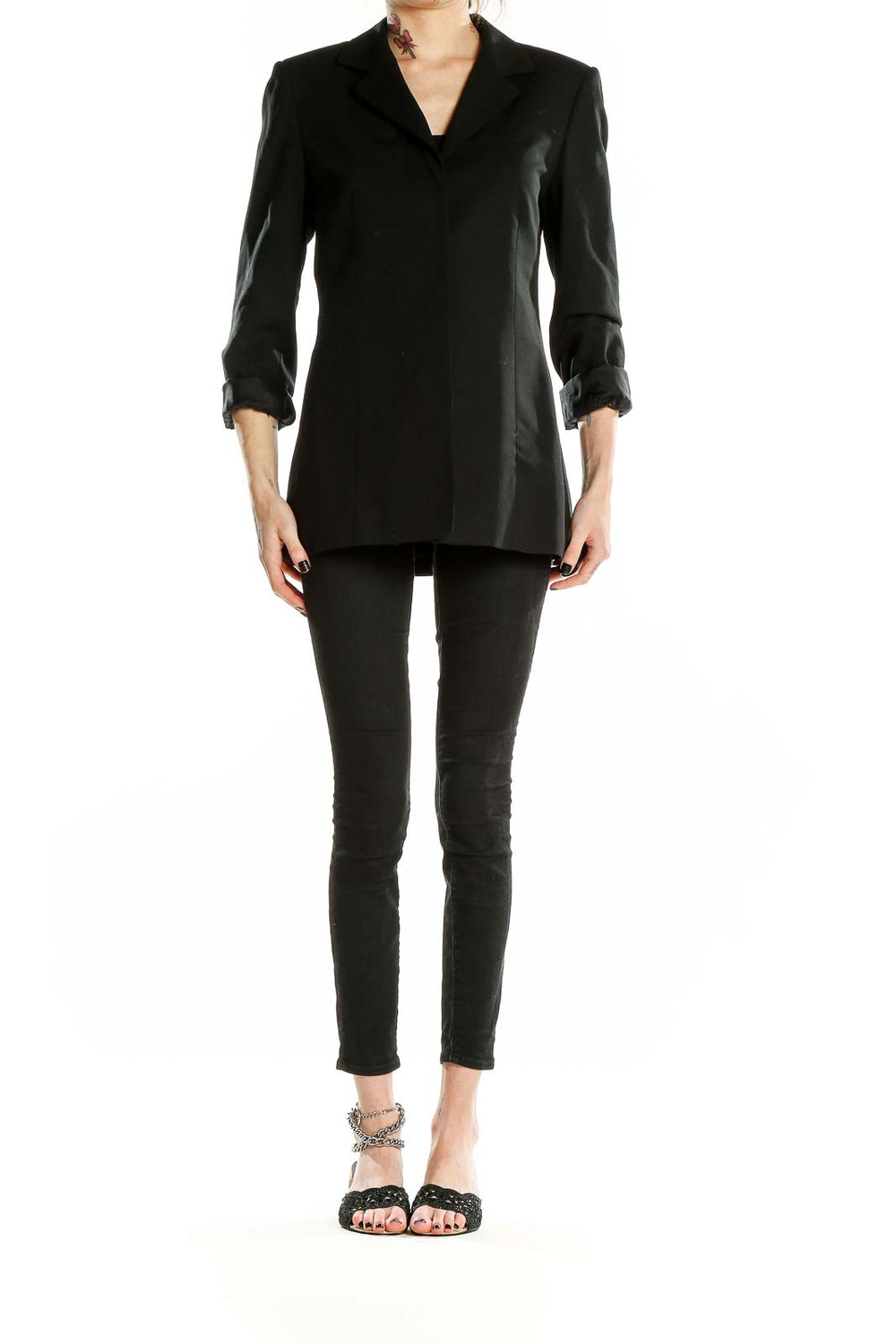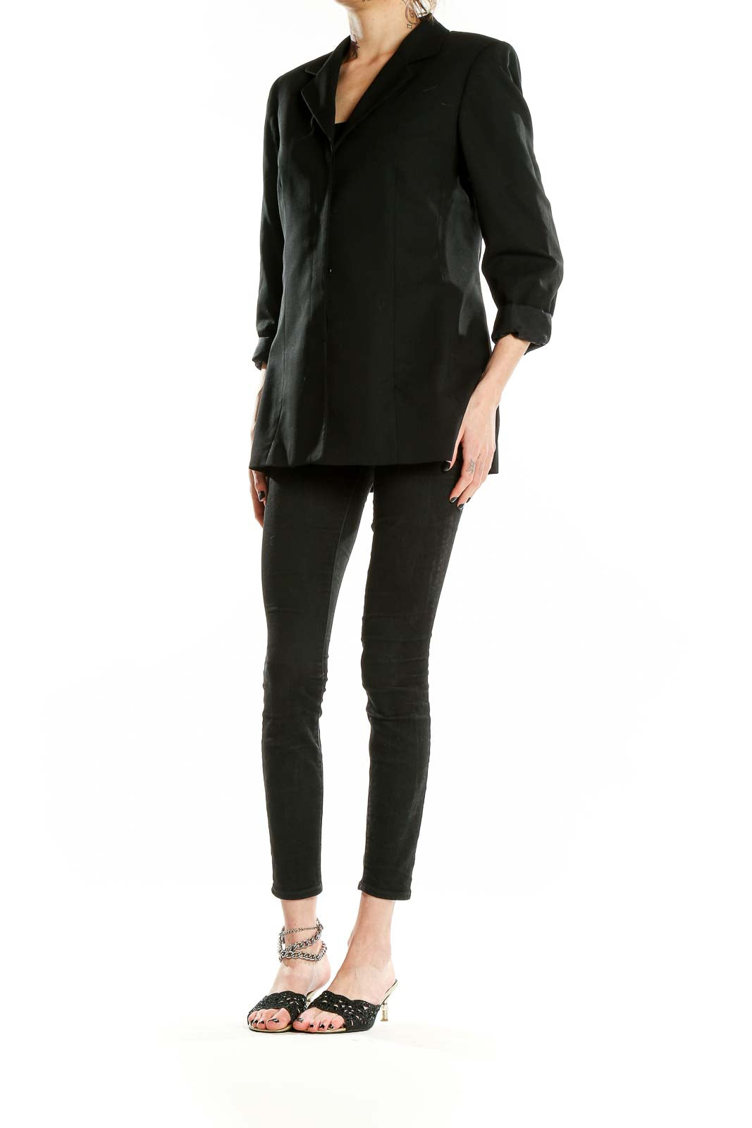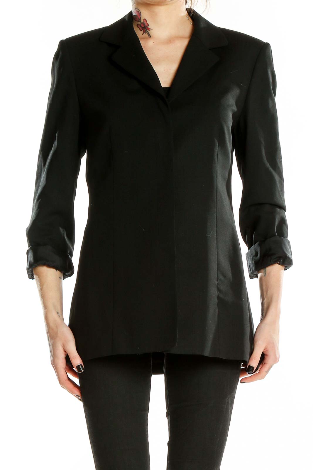 Elevate your professional wardrobe with this sophisticated black blazer from Ann Taylor. Crafted from a luxurious blend of acetate and wool, this jacket offers both comfort and style. The classic silhouette features a notched lapel, long sleeves with rolled cuffs, and a single-button closure, creating a sleek and polished look. With its versatile design, this blazer can easily transition from office to evening wear. The excellent condition ensures you'll look impeccable for any occasion. Pair it with tailored trousers or a pencil skirt for a refined ensemble that commands attention.