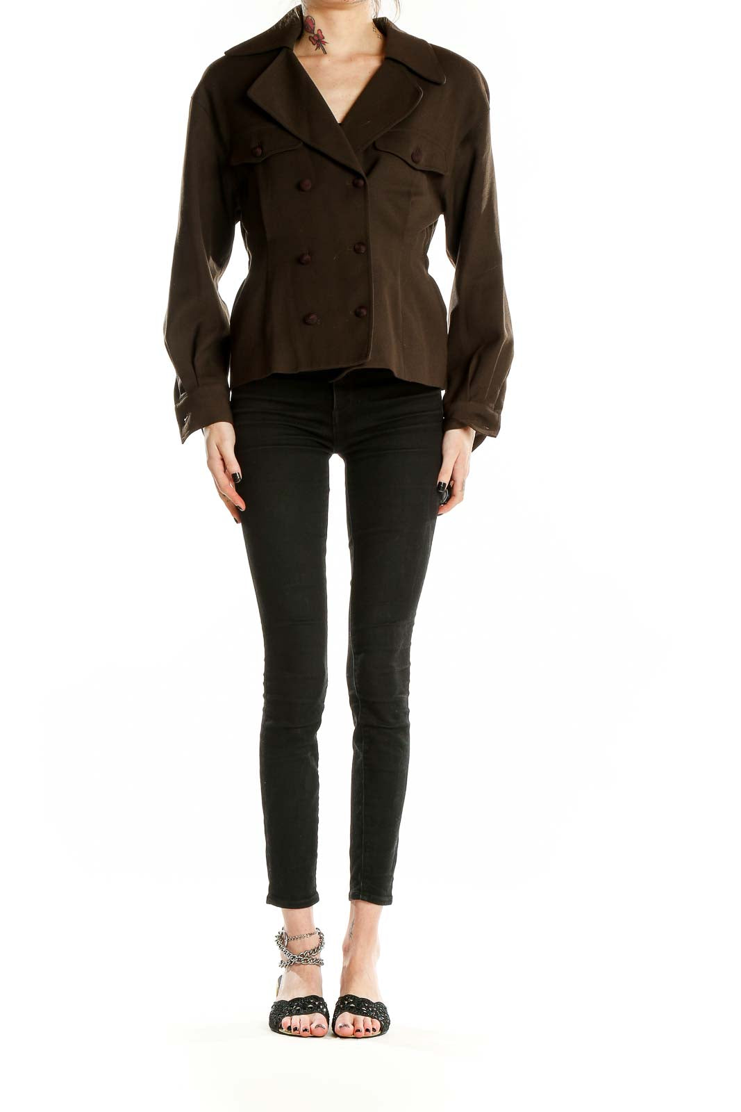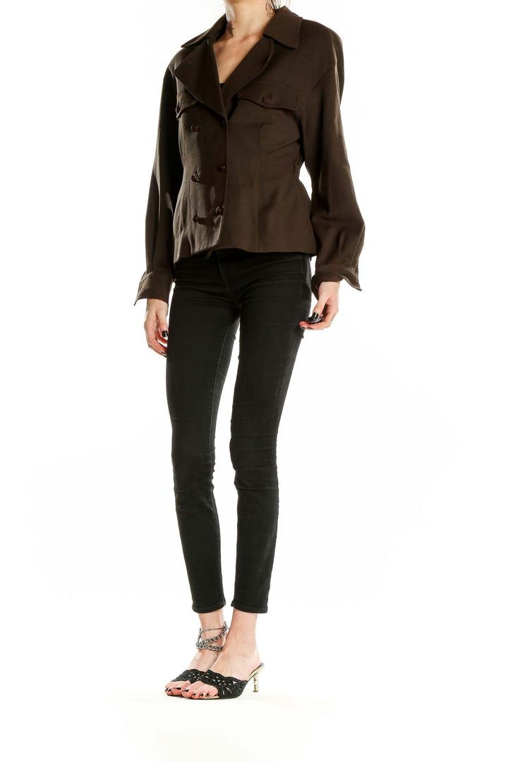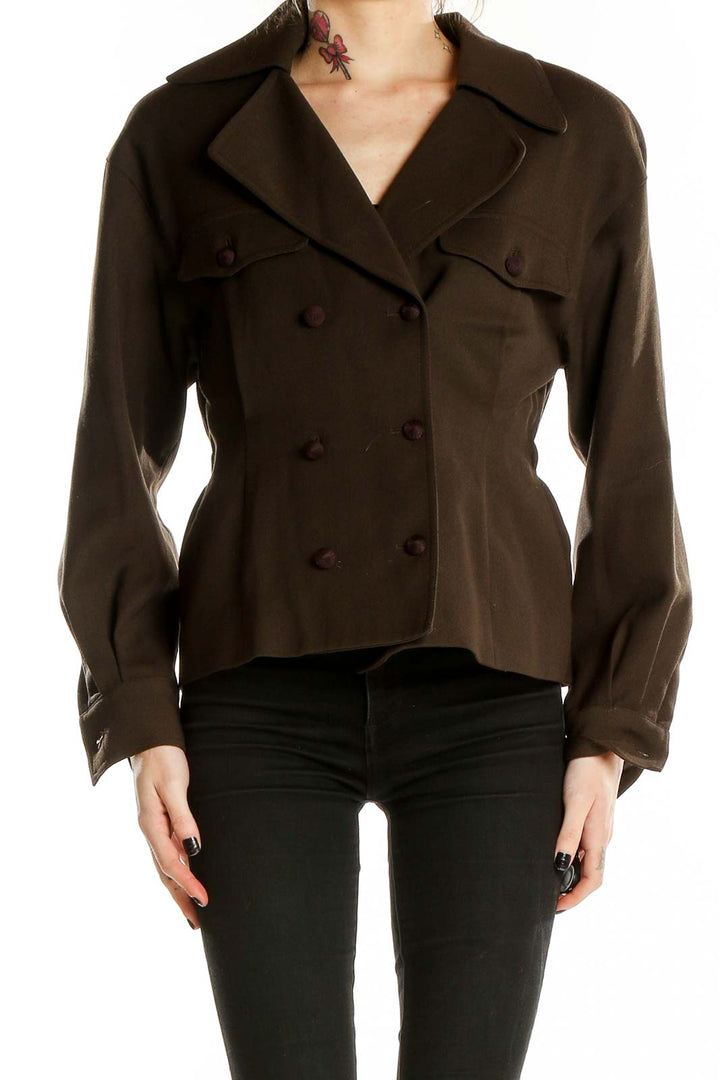 Elevate your outerwear collection with this sophisticated brown double-breasted jacket by Dana Buchman. Crafted from a luxurious blend of nylon and wool, this jacket offers both style and warmth for the cooler seasons. The classic silhouette features a wide collar, front flap pockets, and stylish button detailing that adds a touch of elegance to any ensemble.
