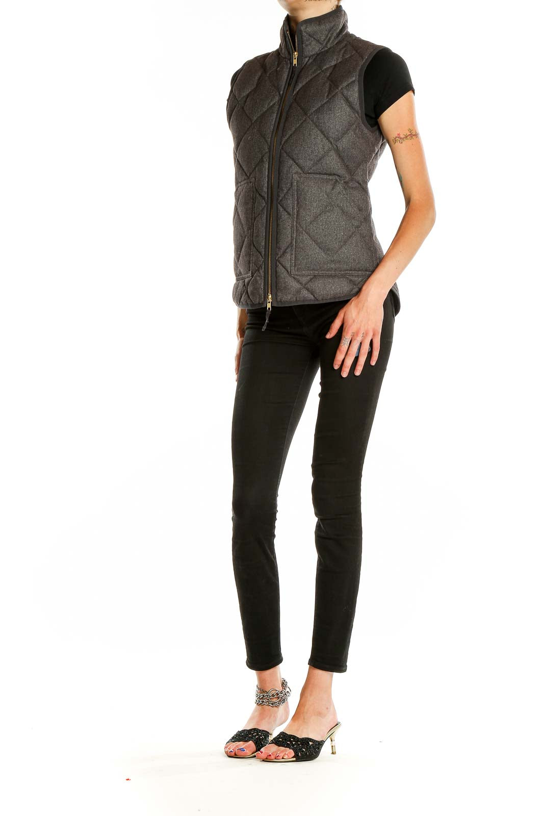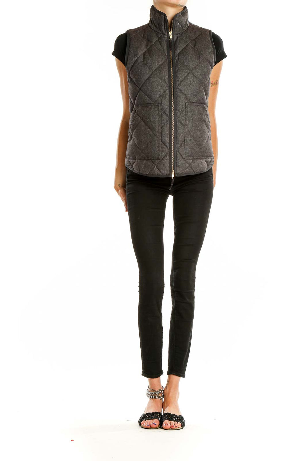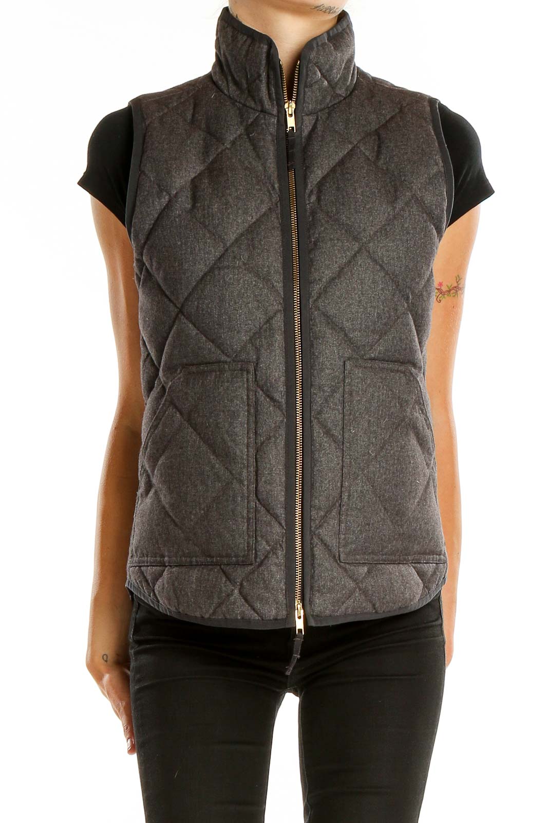 Stay warm and stylish with this charcoal quilted puffer vest from J.Crew. Perfect for layering, this versatile piece features a classic diamond quilting pattern that adds texture and visual interest. The high collar provides extra protection against the elements, while the full-length zipper allows for easy on and off. Two convenient front pockets offer space for your essentials. Made with a soft, wool-like fabric, this vest offers both comfort and durability. The slim fit silhouette flatters your figure without adding bulk, making it ideal for both casual and semi-formal occasions. In excellent condition, this XS-sized vest is a must-have addition to your fall and winter wardrobe.
