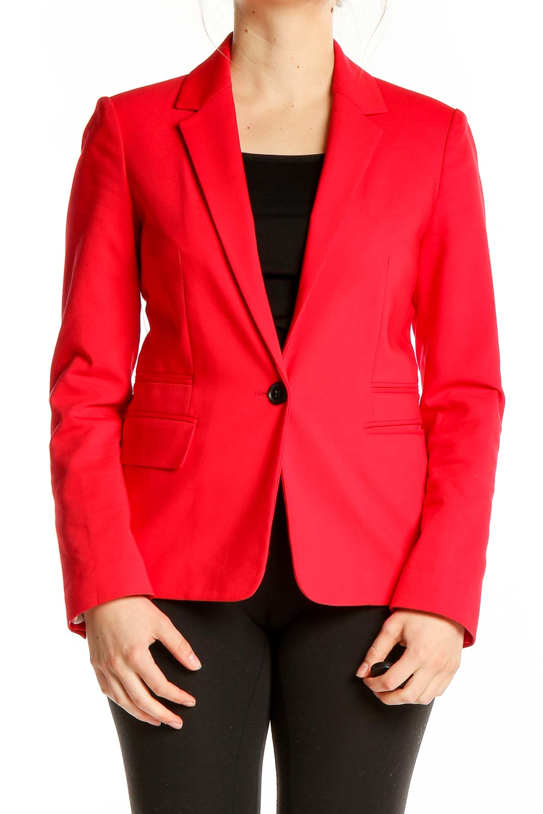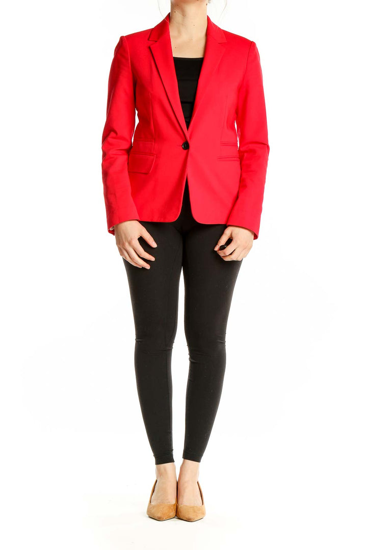 Make a bold statement with this vibrant red blazer from Express. Crafted from a comfortable blend of cotton, polyester, and spandex, this jacket offers both style and flexibility. The sleek single-button closure creates a flattering silhouette, while the notched lapels add a touch of classic sophistication. Perfect for the office or a night out, this versatile piece features functional front pockets and long sleeves with button cuffs. The excellent condition ensures you'll look polished and put-together every time you wear it. With its tailored fit and eye-catching color, this Express blazer is sure to become a standout piece in your wardrobe.
