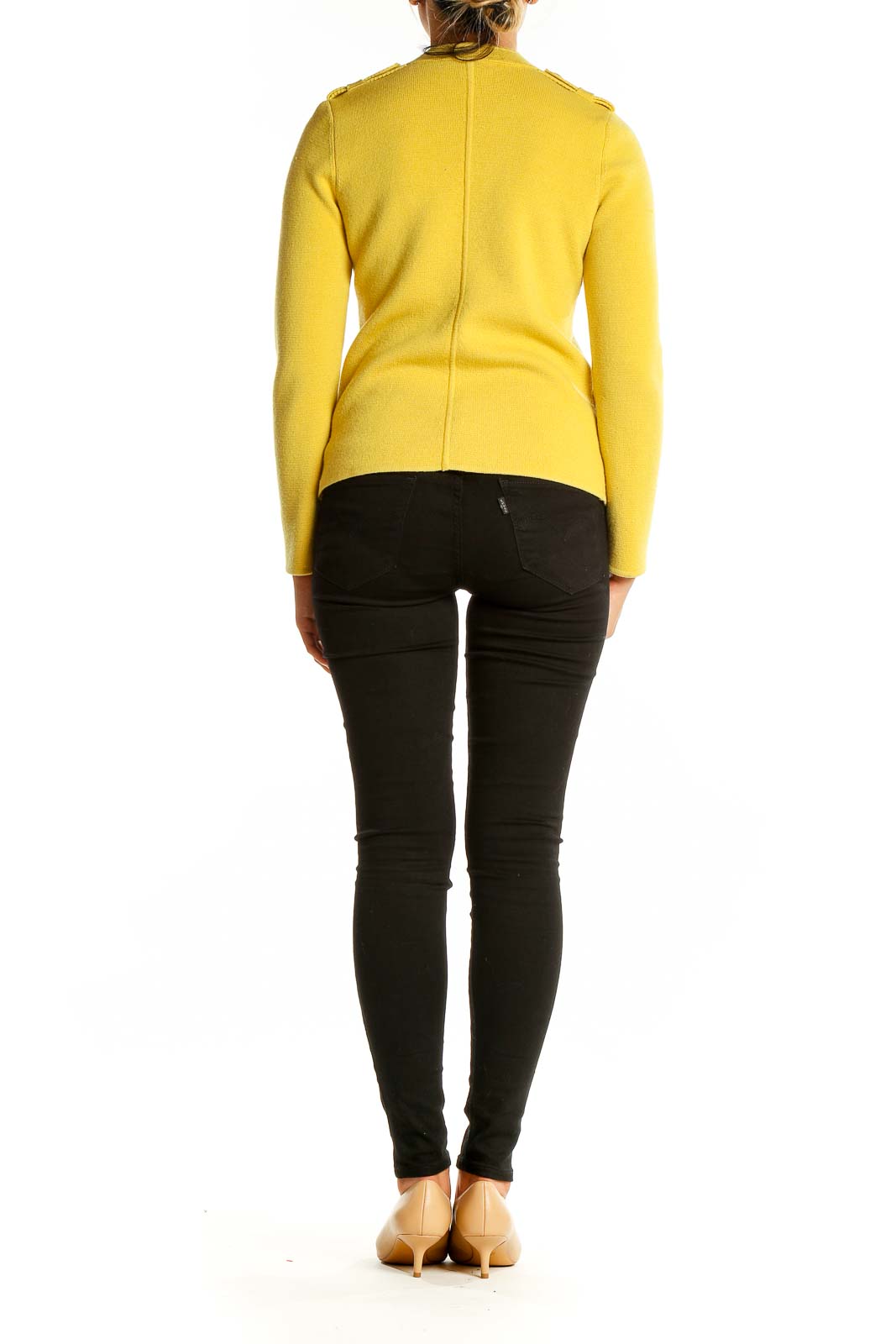 Back view of yellow Merino wool button-up cardigan from Talbots
