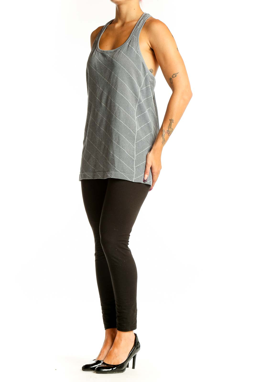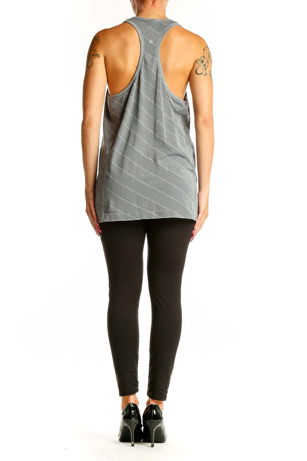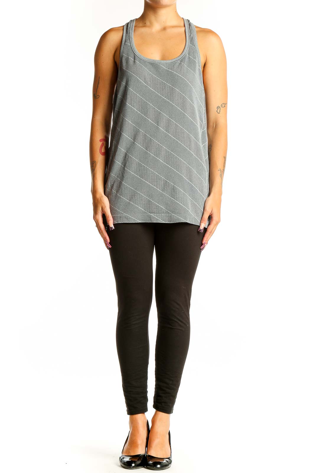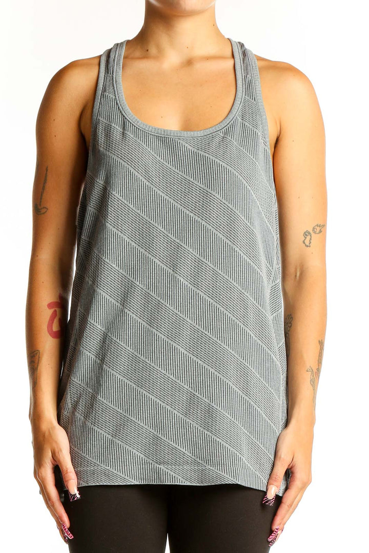 Elevate your workout wardrobe with this sleek gray Lululemon tank top. Featuring a stylish diagonal striped pattern, this racerback design offers both comfort and freedom of movement for your active lifestyle. The lightweight fabric hugs your curves while providing excellent breathability, making it perfect for yoga, running, or any high-intensity workout.