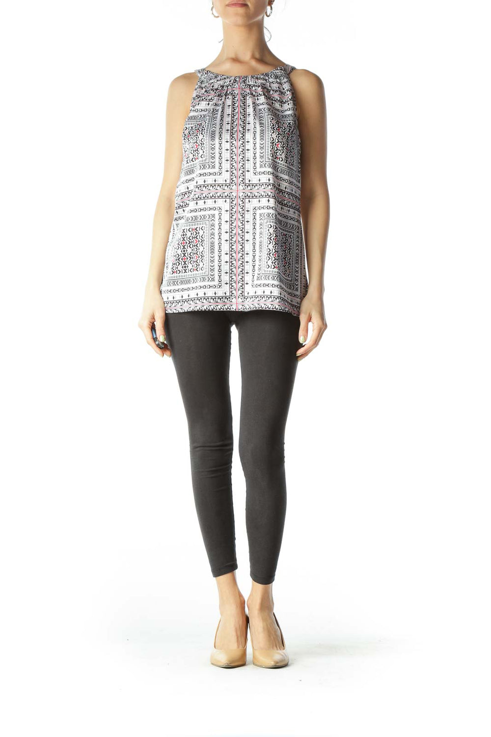 White Geometric Print Blouse