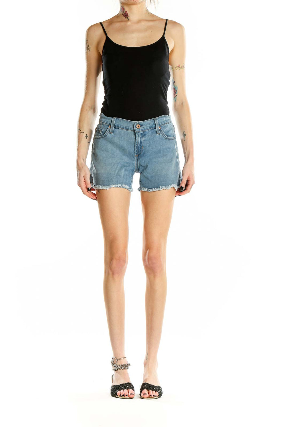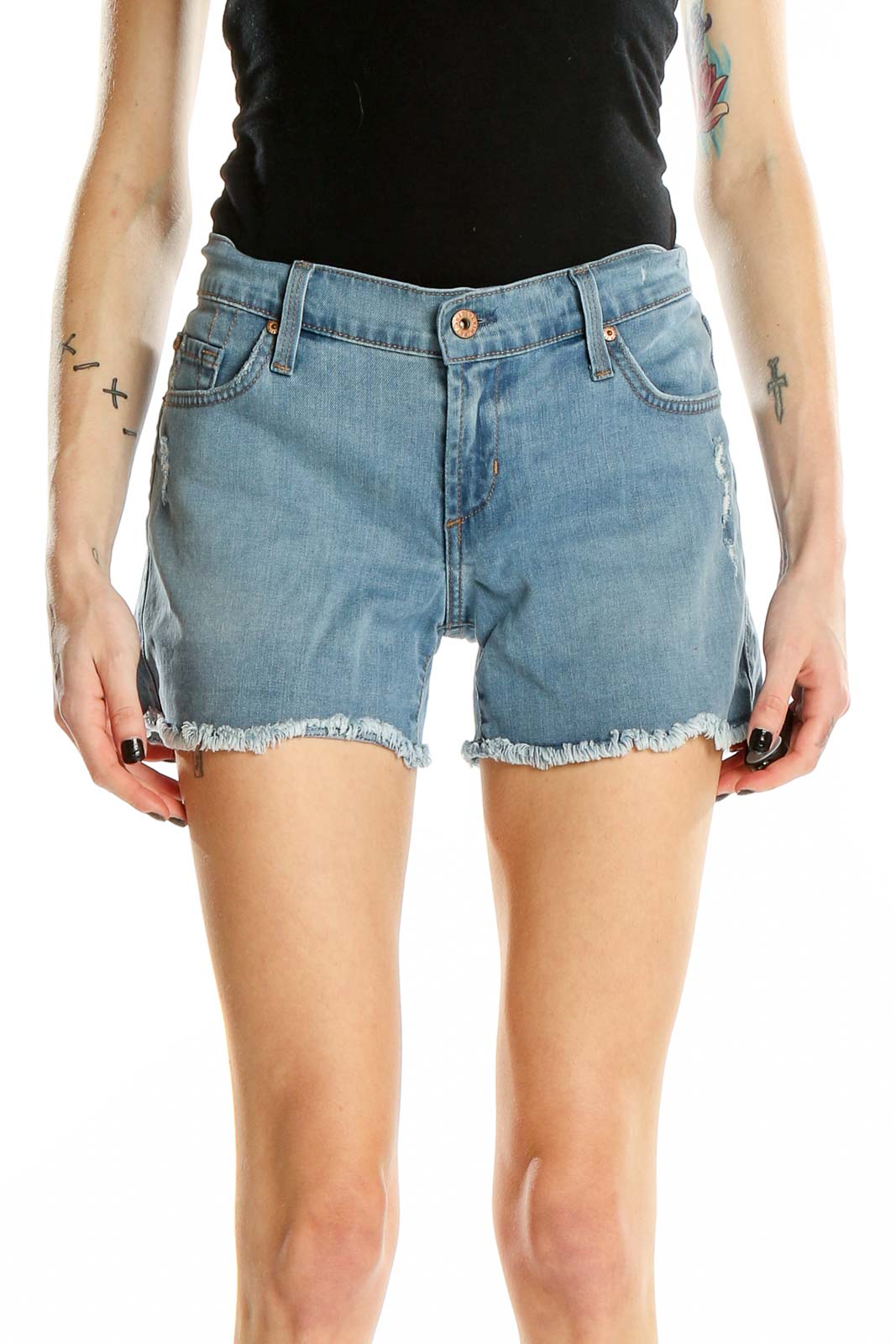 Designed with a classic five-pocket style, these shorts feature a mid-rise waist and a length that hits mid-thigh, offering a flattering fit for various body types. The light wash denim gives a fresh, airy feel ideal for warm weather. The frayed edges provide a fashionable touch, making these shorts a versatile addition to your summer wardrobe.