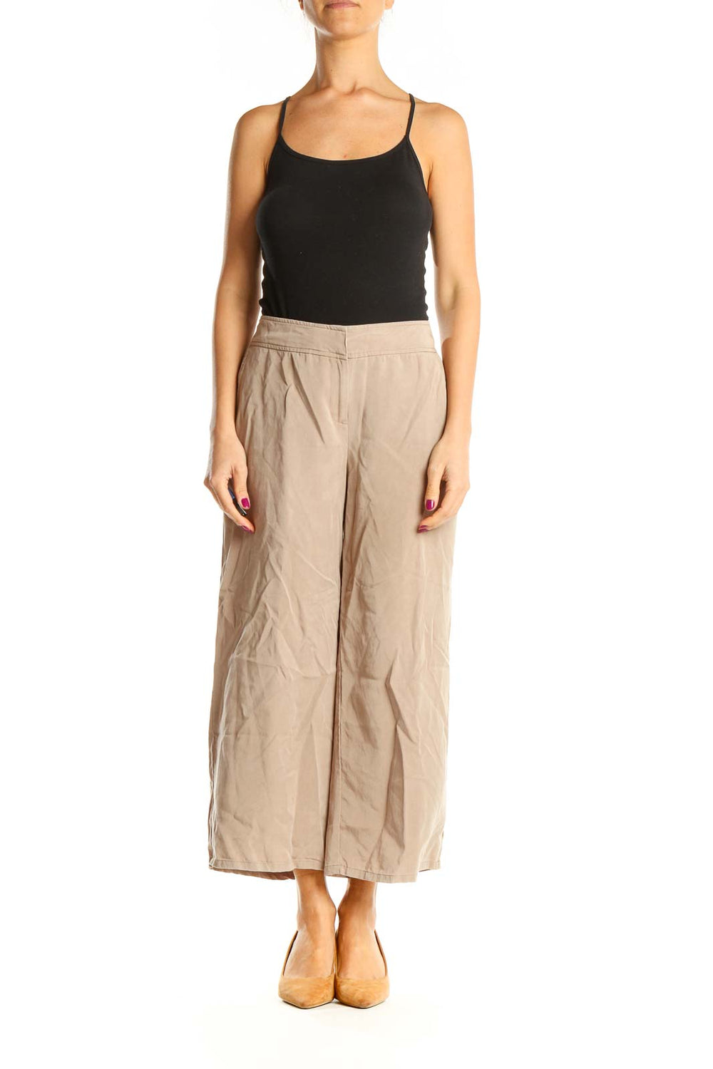Beige Wide Leg Casual Trousers