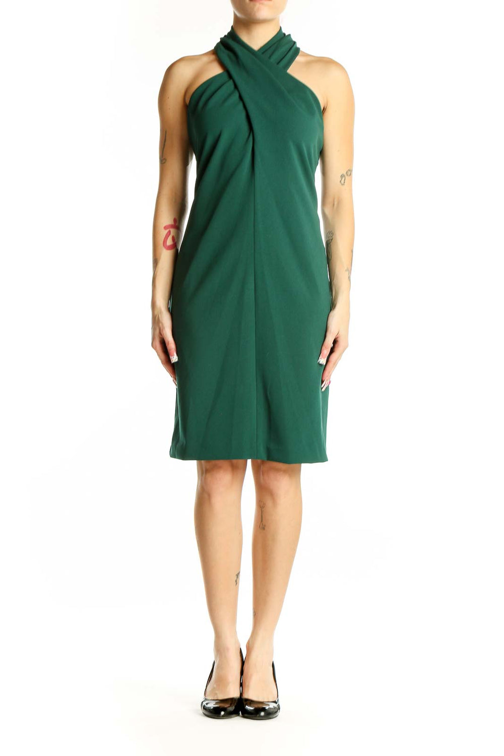 Make a stunning entrance in this elegant green halter neck cocktail dress by Eliza J. The rich emerald hue is perfect for any special occasion, from cocktail parties to formal events. Crafted from a luxurious blend of polyester and spandex, this dress offers both comfort and style.