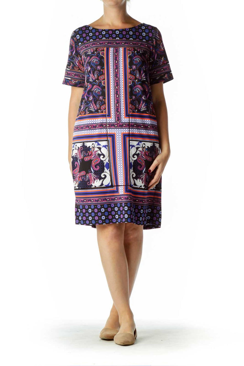 Black Blue Purple Paisley Print Shift Dress