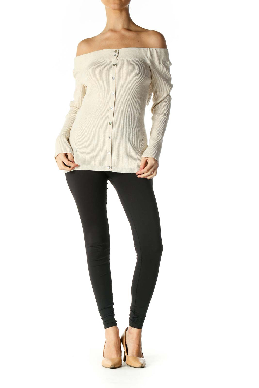 Beige Textured Retro Sweater