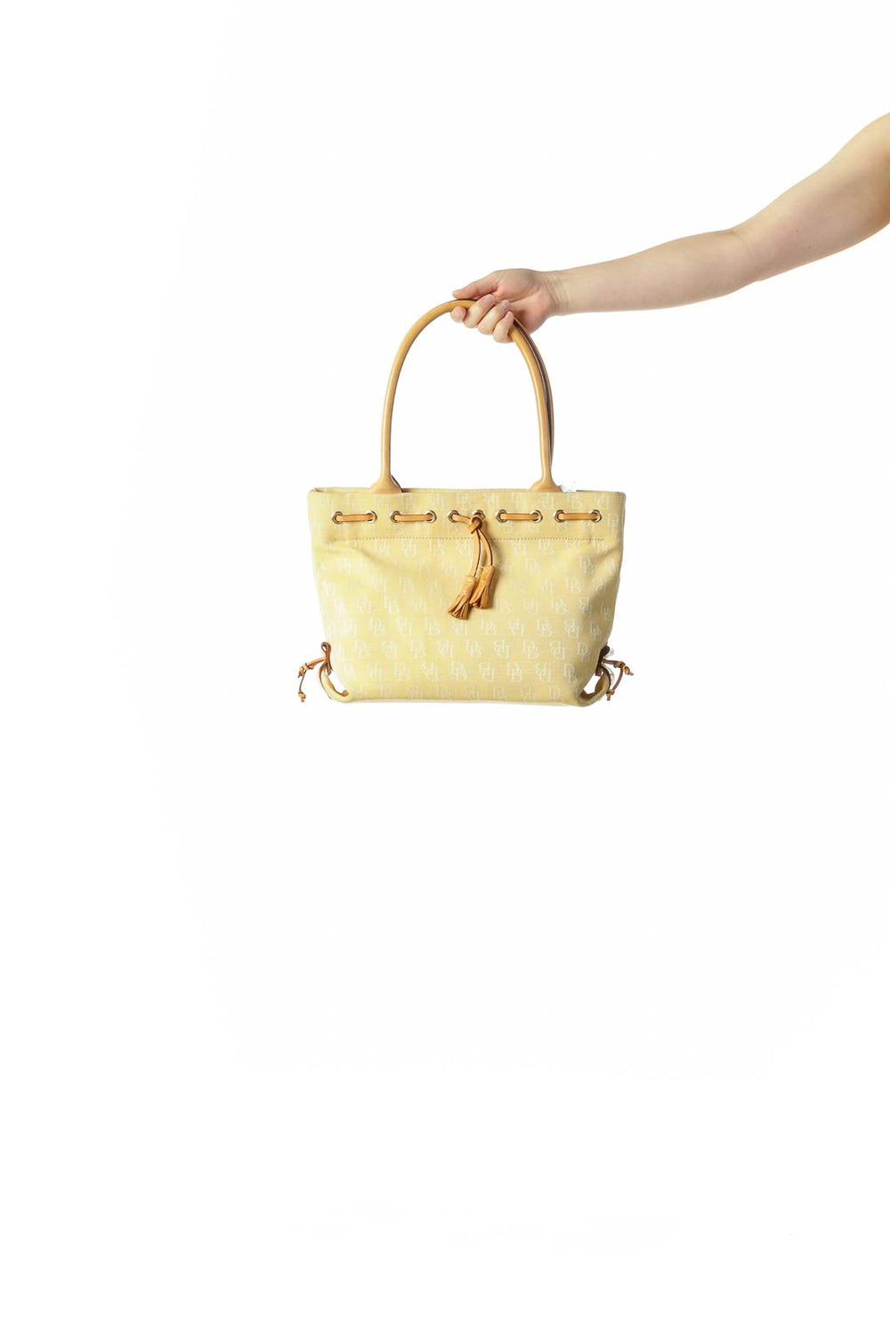 Beige Gold Hardware Leather Handles Magnetic Closure Pocketed Handbag