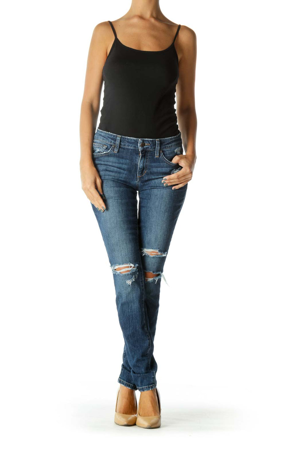Blue Medium Wash Distressed Skinny Stretch Denim Jeans