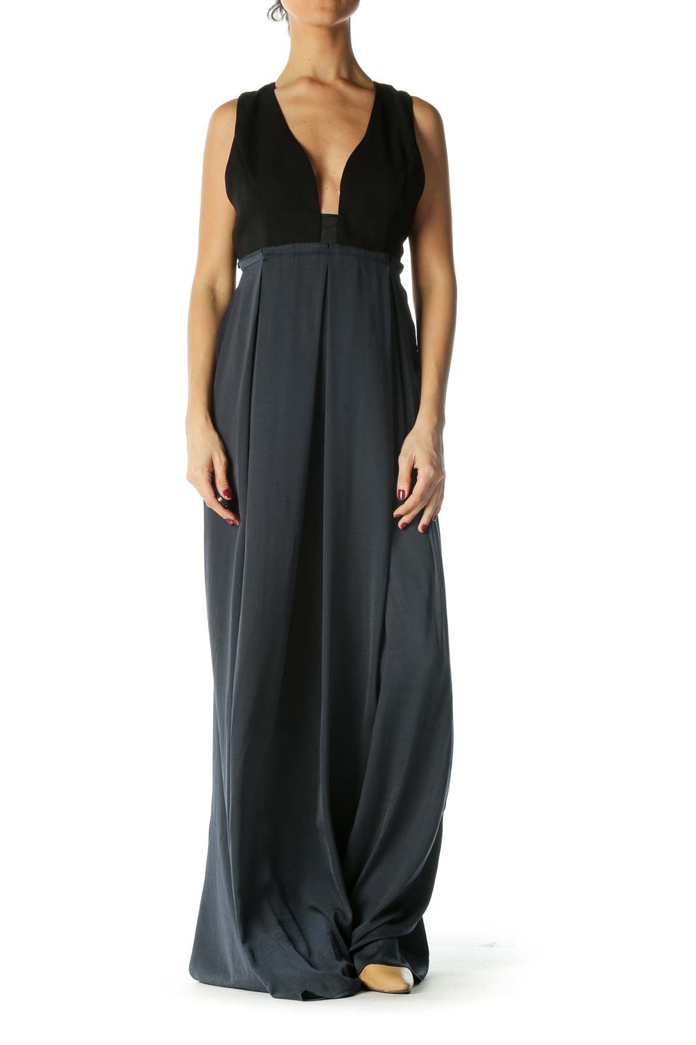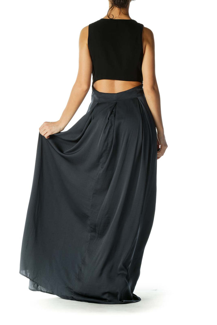 Black and Blue Deep V Neck With Cut Outs Evening Dress