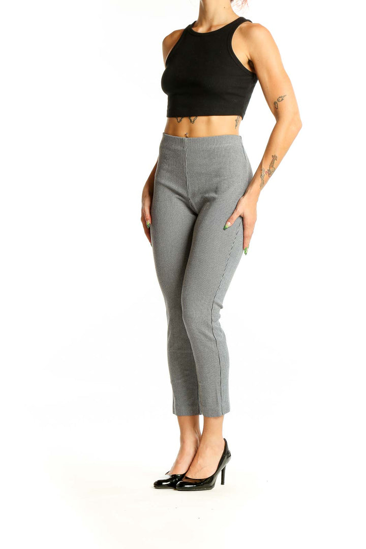 Elevate your wardrobe with these sophisticated gray cropped pants from Karen Kane. Crafted from a luxurious blend of polyester, rayon, and spandex, these pants offer both comfort and style. The textured fabric adds a touch of elegance, making them perfect for both office wear and casual outings.