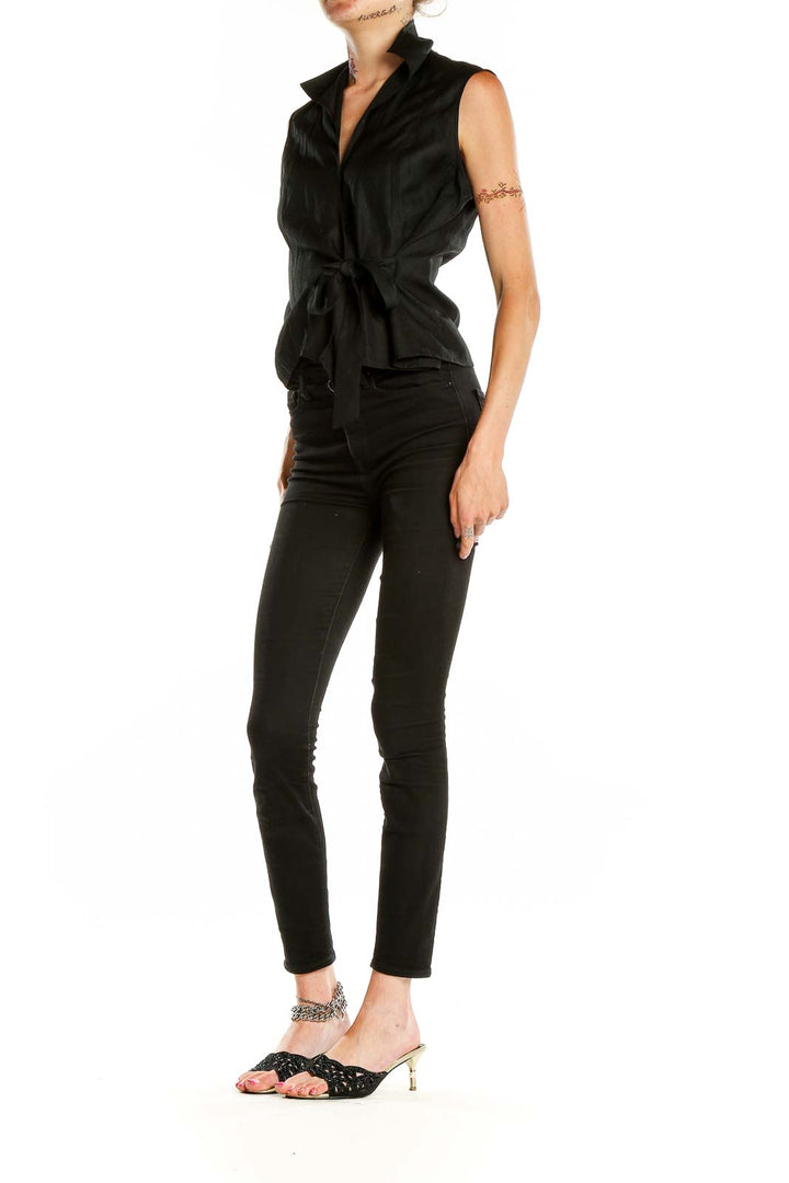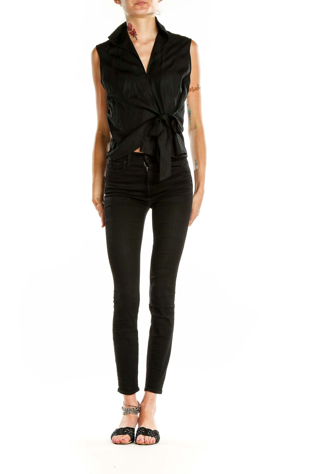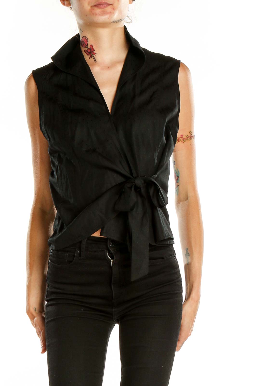 Elevate your wardrobe with this sophisticated black sleeveless wrap top from Kate Hill. Crafted with a flattering V-neckline and a stylish wrap design, this versatile piece effortlessly transitions from day to night. The tie-waist detail accentuates your figure, creating a polished and feminine silhouette. Made from a smooth, lightweight fabric, this top offers both comfort and elegance. Its sleek design pairs perfectly with tailored pants for a professional look or with your favorite jeans for a chic casual ensemble. In good condition, this XL-sized top features generous measurements to ensure a comfortable fit. Make a statement with this timeless Kate Hill piece that combines classic style with modern flair.