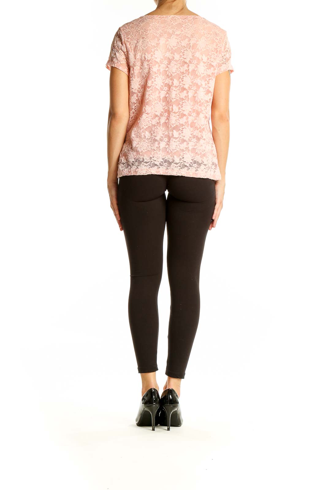 Crafted from a soft blend of nylon and spandex, this top provides a comfortable stretch that hugs your curves in all the right places. The scoop neckline adds a touch of elegance, while the semi-sheer lace fabric creates a subtle, alluring effect. The pastel pink hue is perfect for spring and summer, adding a fresh pop of color to your outfit.