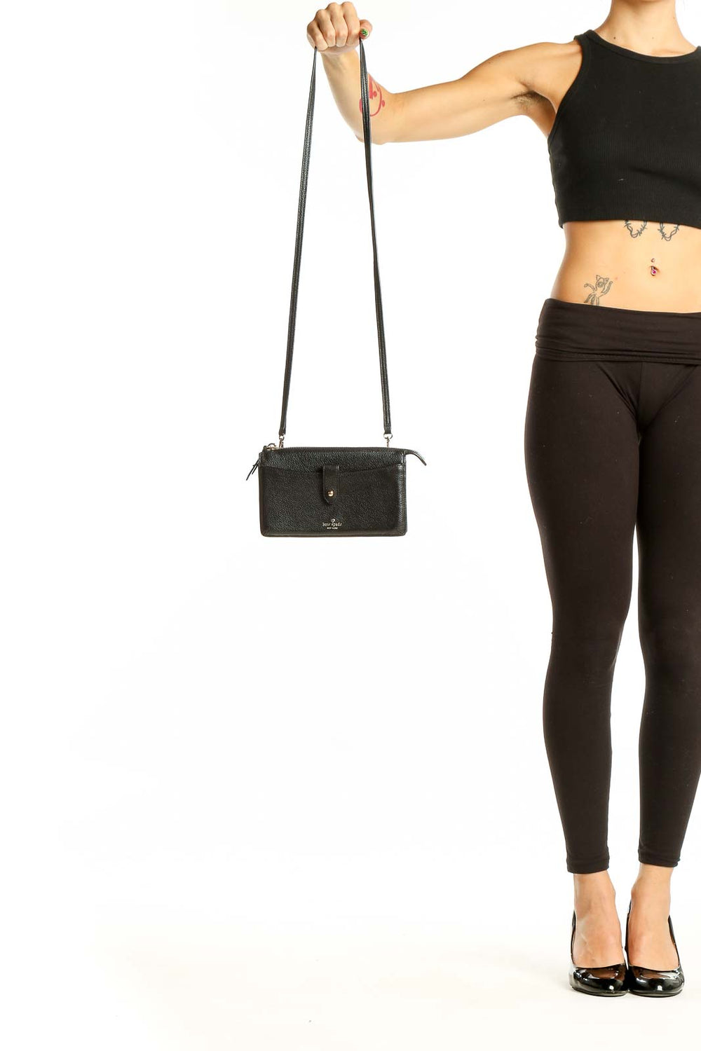 Elevate your everyday style with this sleek black leather crossbody bag from Kate Spade New York. This compact yet versatile accessory is perfect for the fashion-forward woman on the go. The bag features a smooth leather exterior with a classic rectangular shape, accented by gold-tone hardware for a touch of elegance.