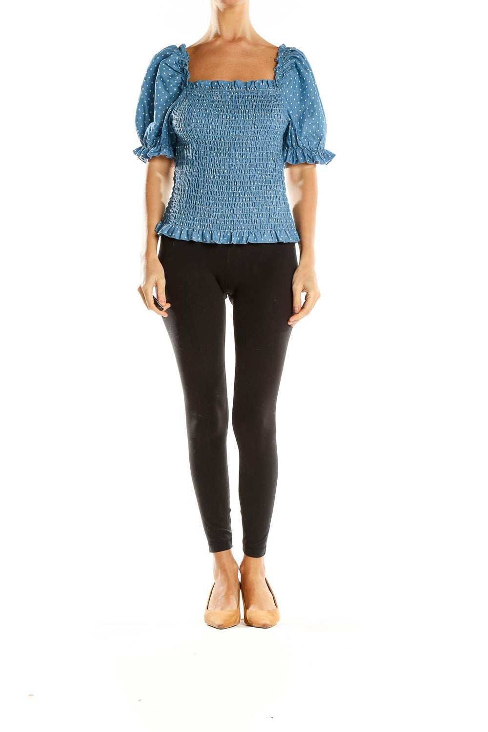 Blue Polka Dot Smocked Blouse