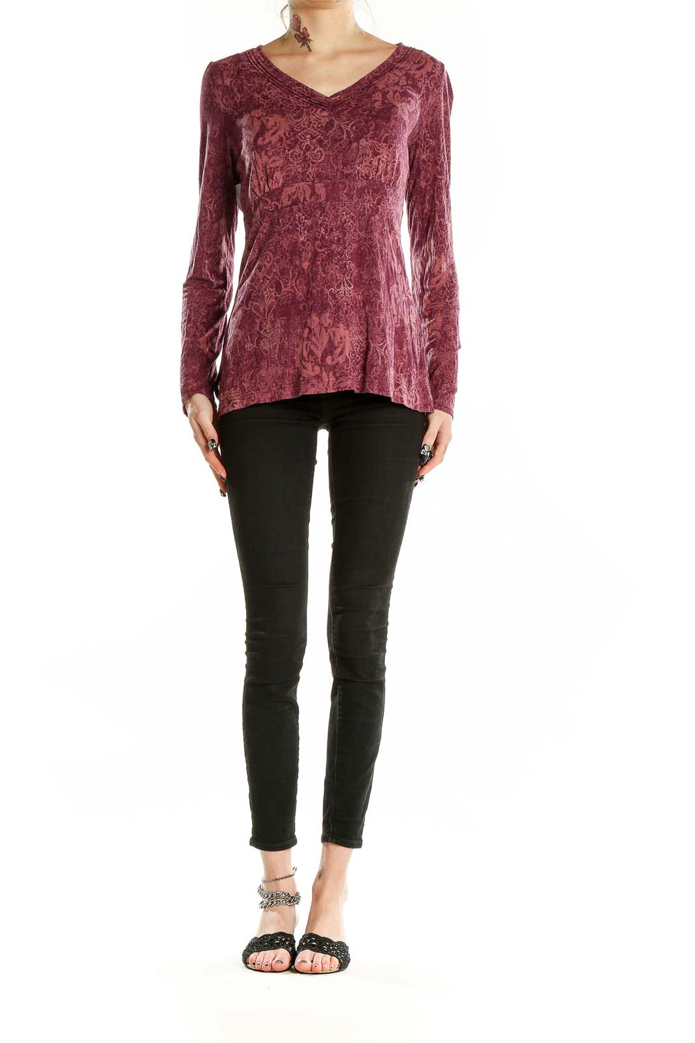 Burgundy V Neck Long Sleeve Paisley Shirt
