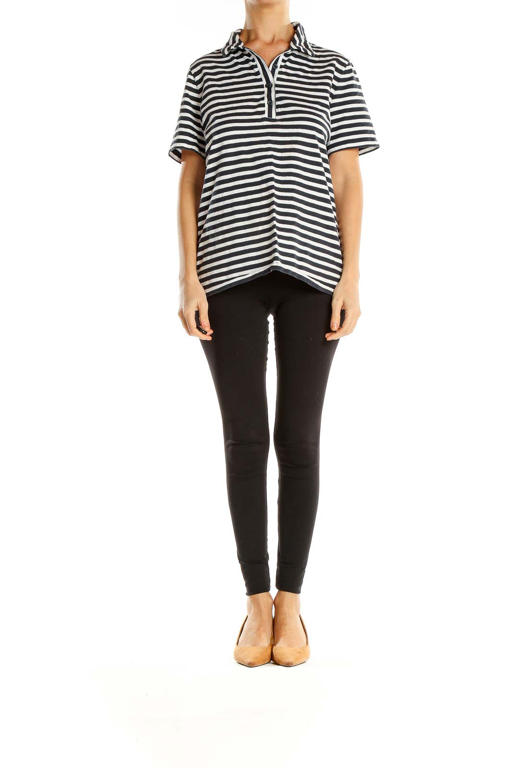 Black White Striped Casual Polo Shirt