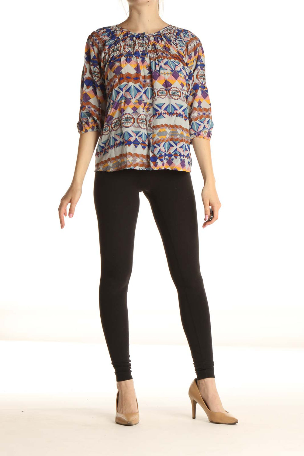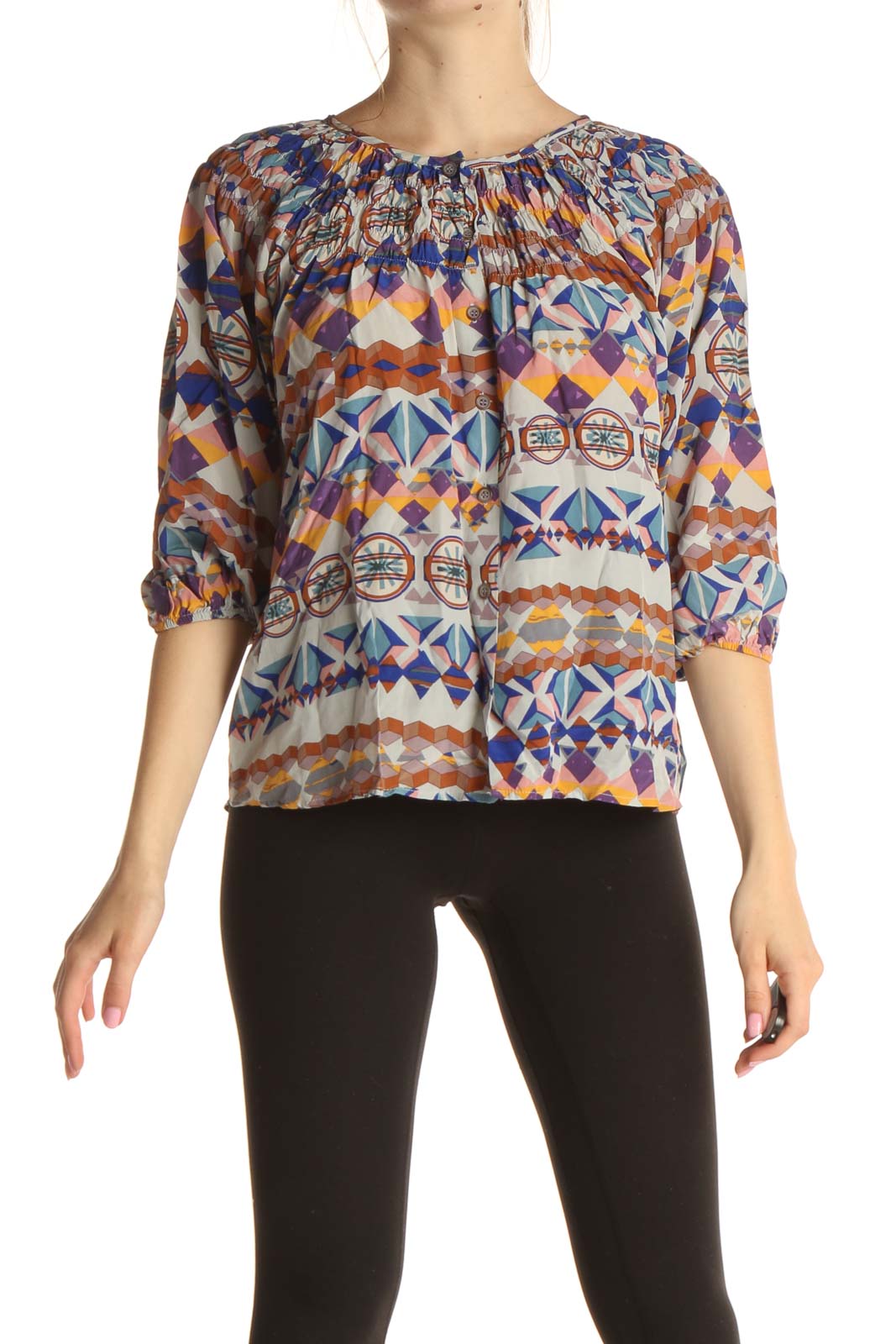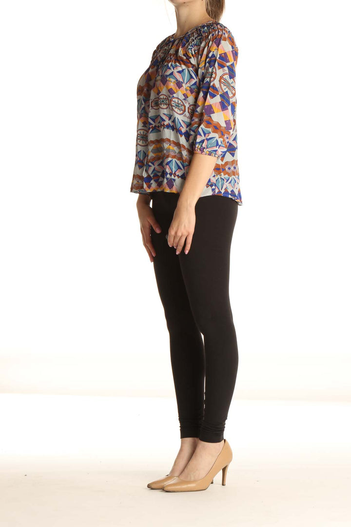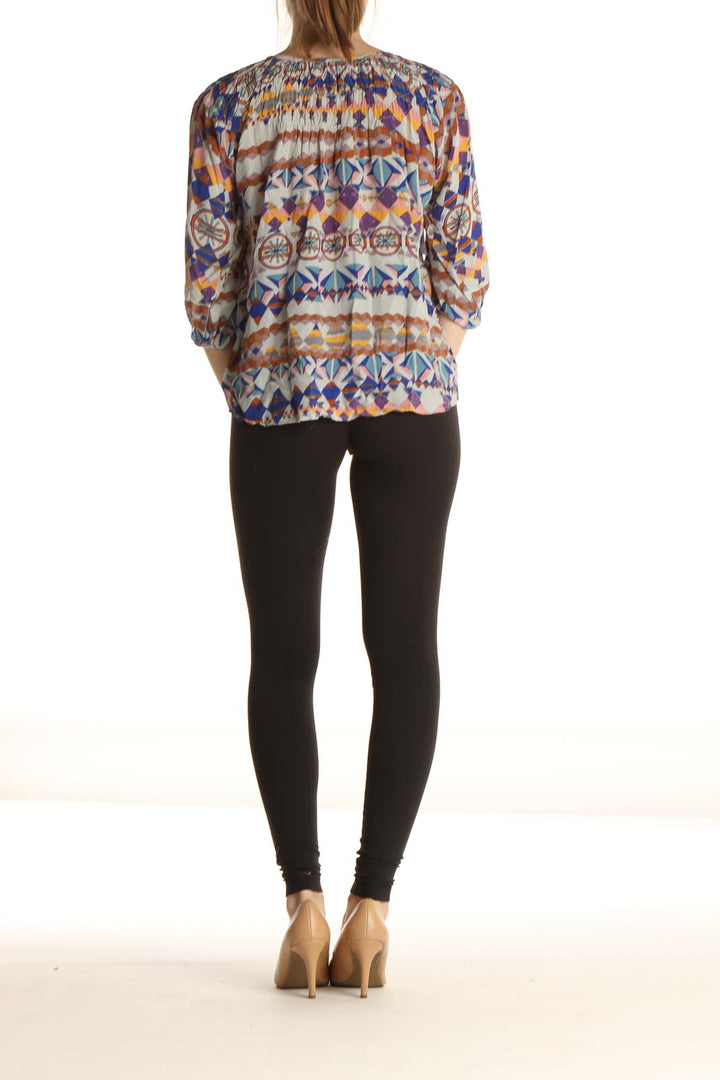 Blue Aztec Print Bohemian Blouse