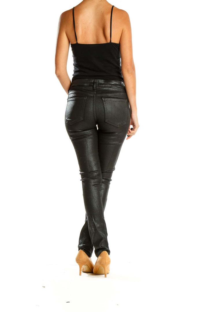 Elevate your denim collection with these sleek black coated skinny jeans from Citizens of Humanity. These jeans feature a lustrous, leather-like finish that adds a touch of edge to your outfit. The skinny fit hugs your curves, creating a flattering silhouette from hip to ankle. Made with high-quality denim, these jeans offer both style and comfort for all-day wear. The classic five-pocket design and button-fly closure maintain a timeless appeal. With a mid-rise waist and 30-inch inseam, these jeans are versatile enough to pair with both casual and dressy tops. In good condition, these Citizens of Humanity jeans are a must-have for any fashion-forward wardrobe.