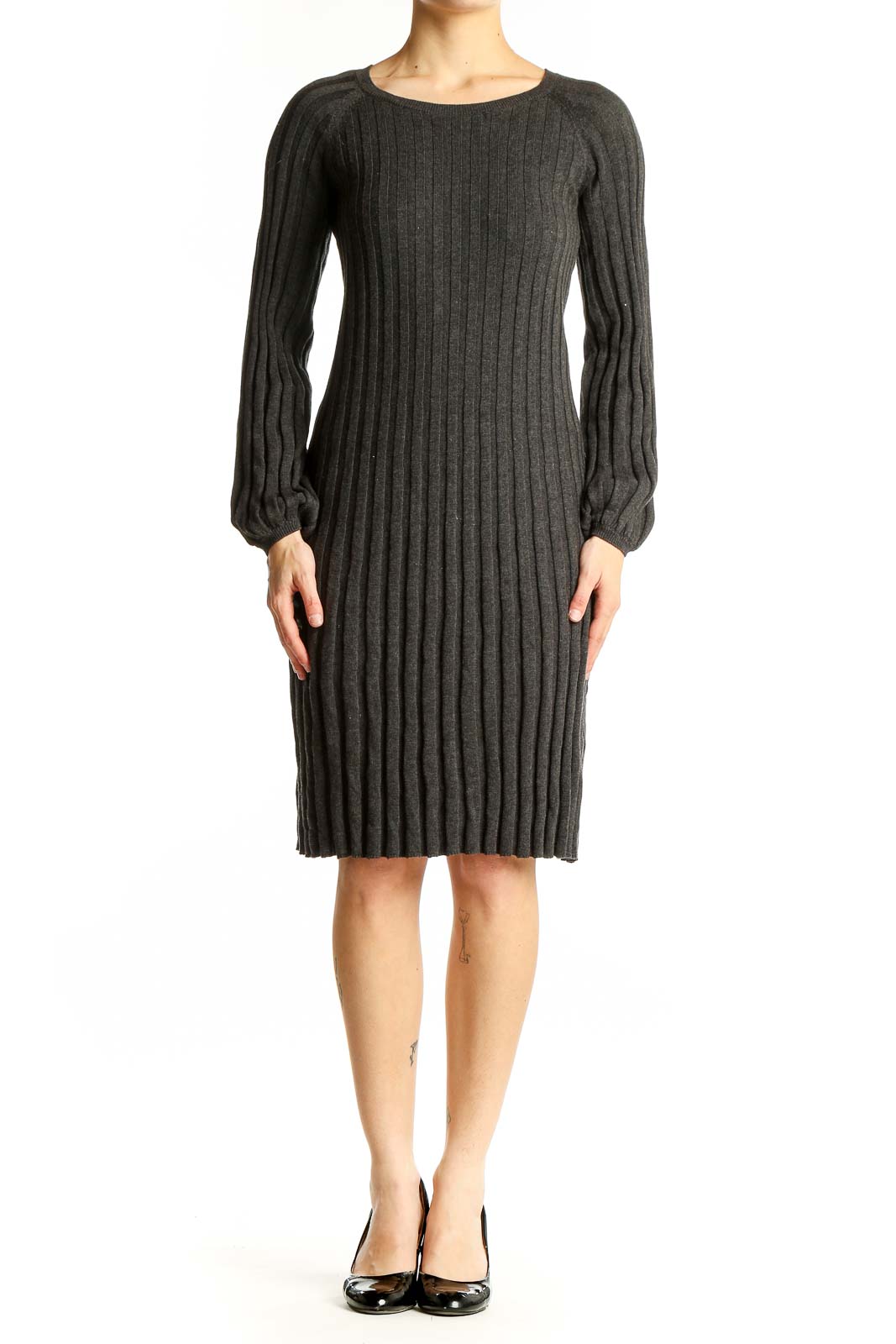 Elevate your cold-weather wardrobe with this chic charcoal ribbed knit sweater dress from Max Studio. Crafted from a soft blend of cotton and rayon, this dress offers both comfort and style. The ribbed texture adds visual interest and provides a flattering fit that hugs your curves in all the right places.