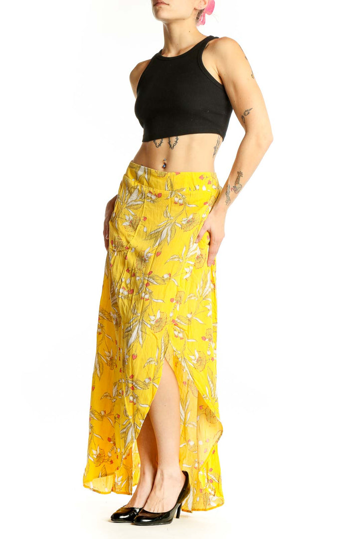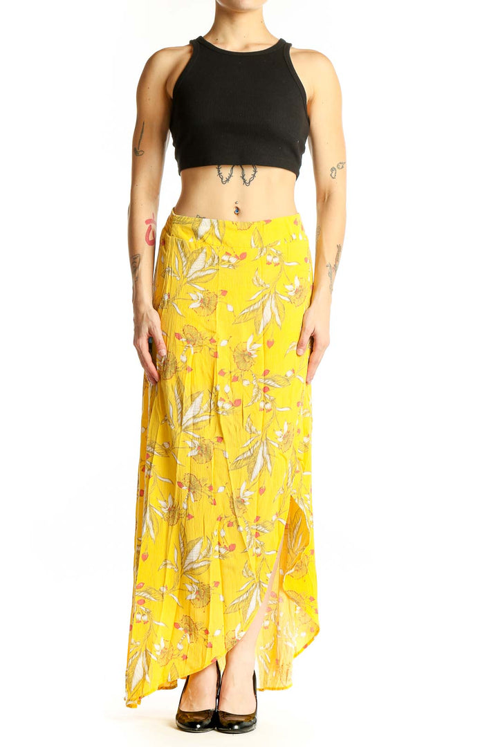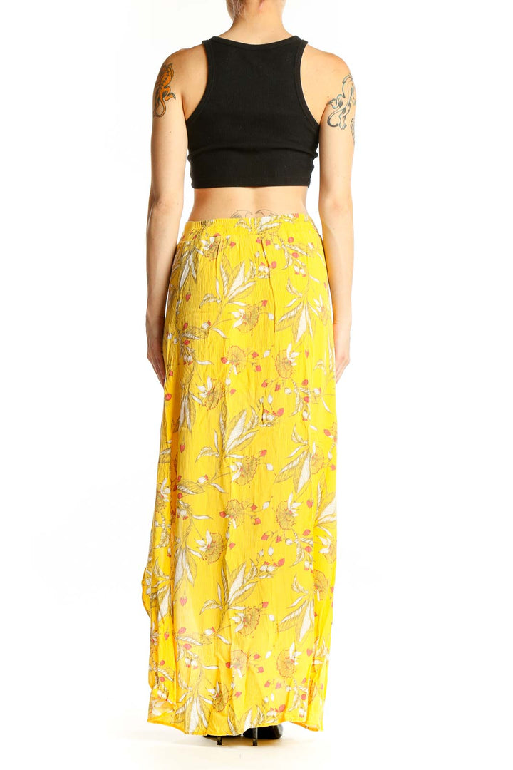 Make a statement with this vibrant yellow maxi skirt from Express. Crafted from lightweight rayon, this skirt features a stunning floral print in soft white and pink hues, perfect for adding a touch of romance to your summer wardrobe. The flowing silhouette creates an elegant drape that flatters your figure, while the high-low hemline adds a modern twist to the classic maxi style. With a comfortable elastic waistband and a generous 39-inch length, this skirt offers both style and ease of movement. The excellent condition ensures you'll look fresh and polished every time you wear it. Pair with a simple crop top for a casual day out, or dress it up with heels for a special occasion. This Express skirt is a versatile piece that will quickly become a go-to favorite in your closet.