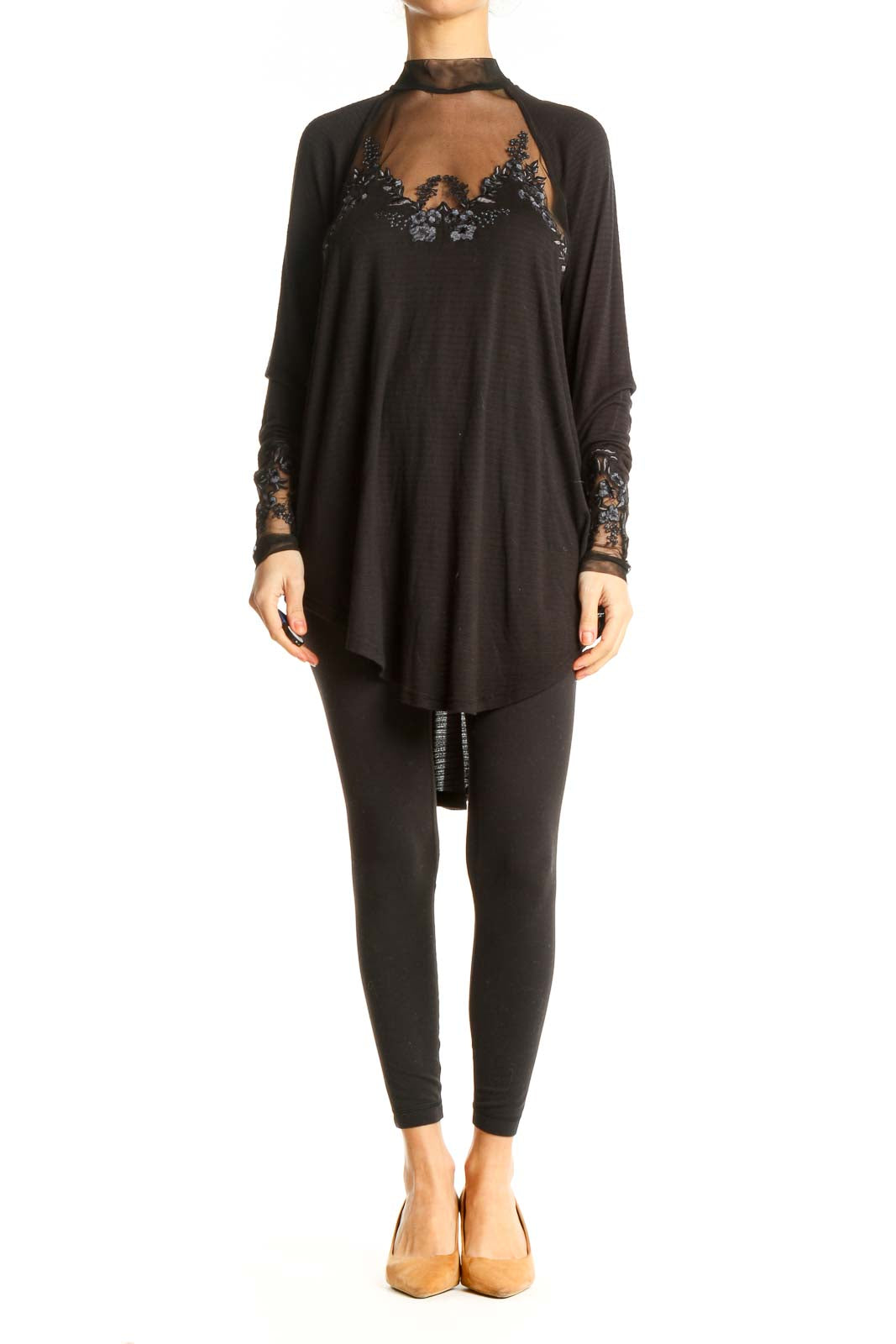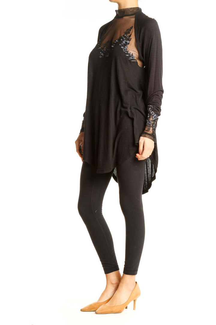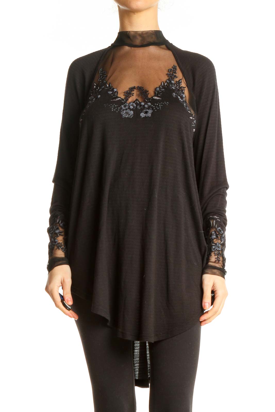Black Sheer Embroidered Long Sleeve Top