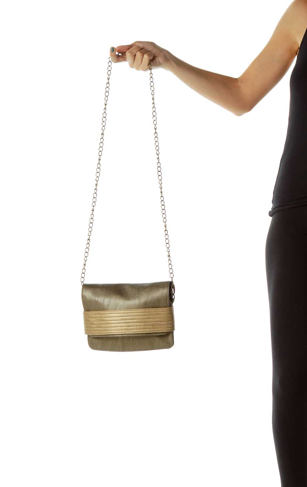 Gold Two-Tone Metallic Crossbody Bag