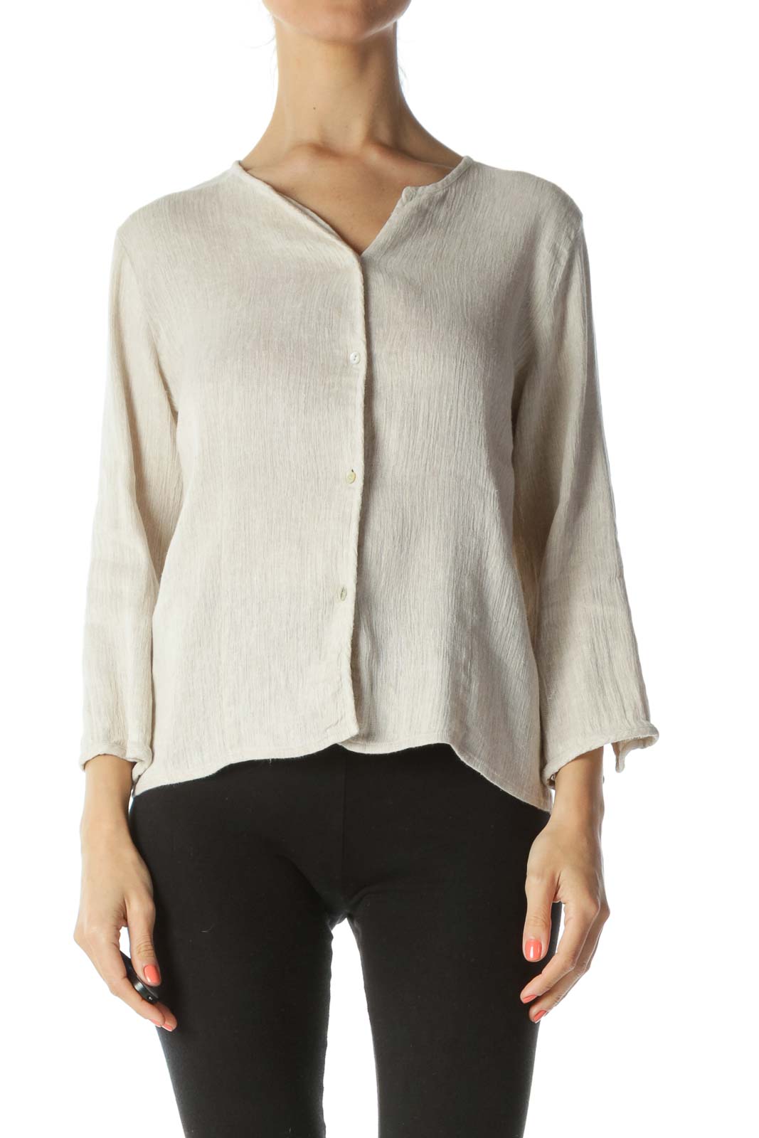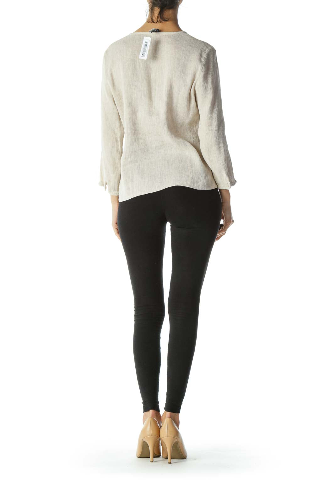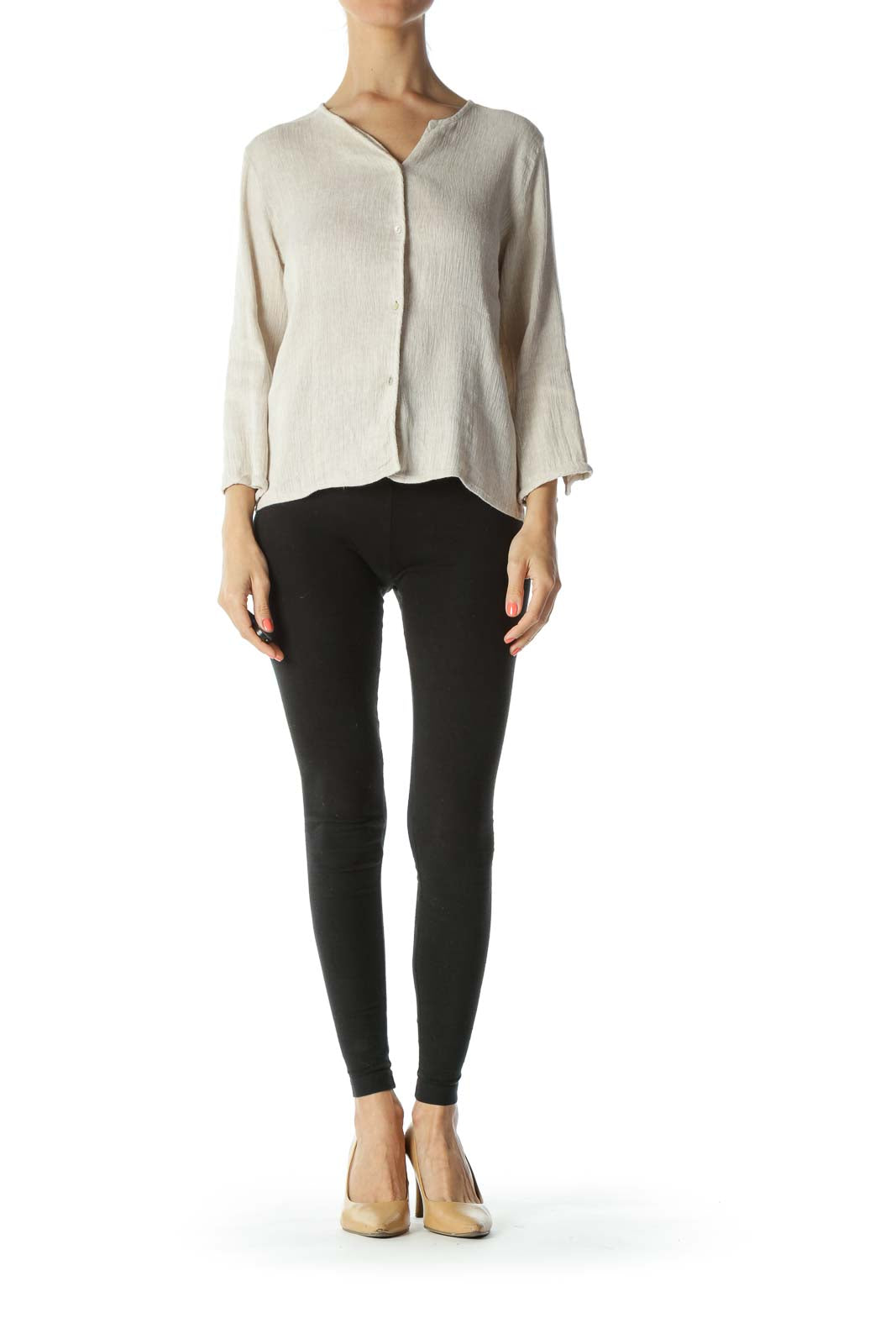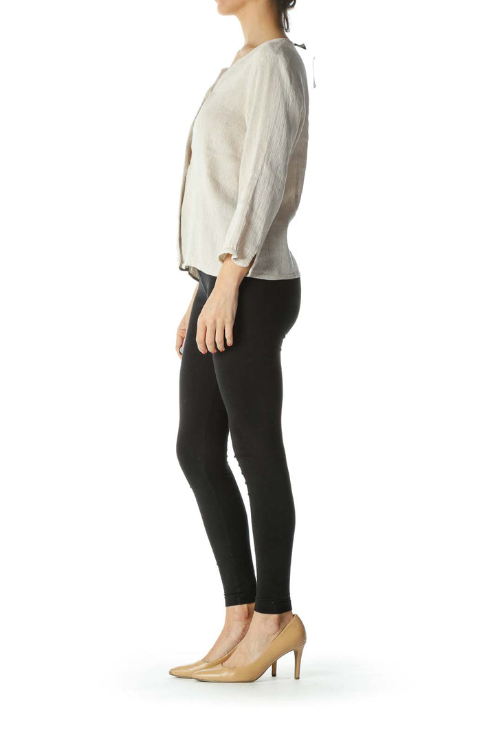 Beige Cotton Linen Textured Buttoned Light-Weight Knit Top