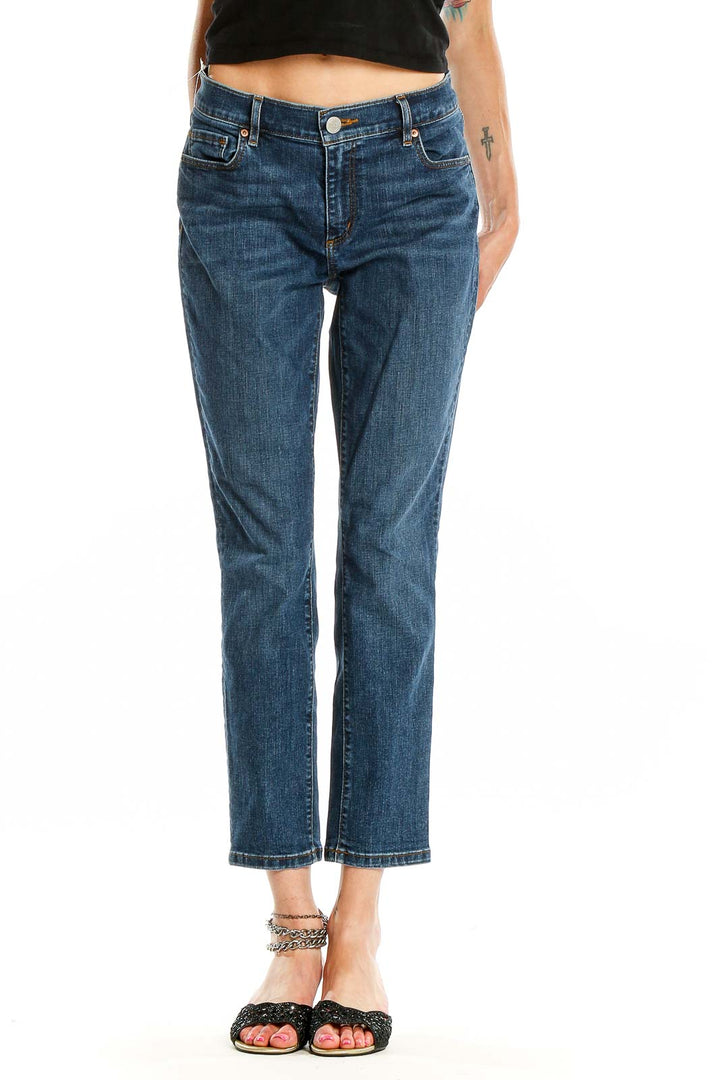 Elevate your denim collection with these stylish blue cropped straight leg jeans from LOFT. Crafted from high-quality denim, these jeans offer a perfect blend of comfort and fashion. The medium wash gives them a versatile, classic look that pairs well with any outfit.