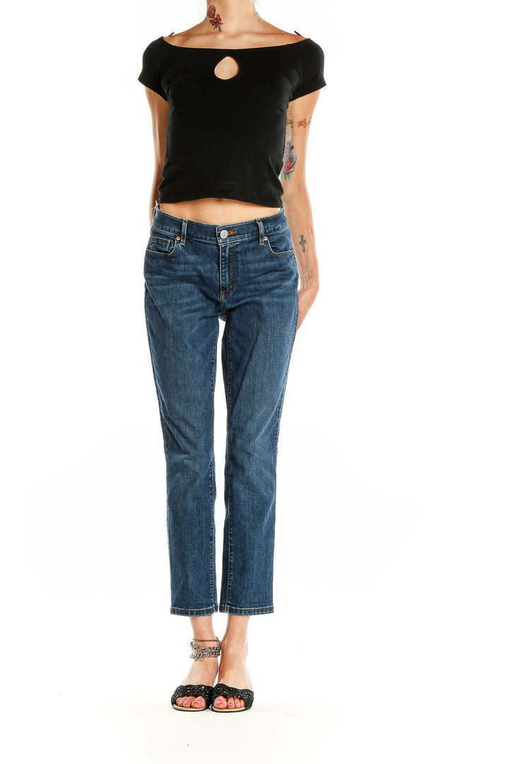 Designed with a straight leg silhouette, these jeans provide a flattering fit that elongates your legs. The cropped length hits just above the ankle, making them ideal for showcasing your favorite shoes. With a comfortable mid-rise waist and traditional five-pocket styling, these jeans combine timeless design with modern flair.
