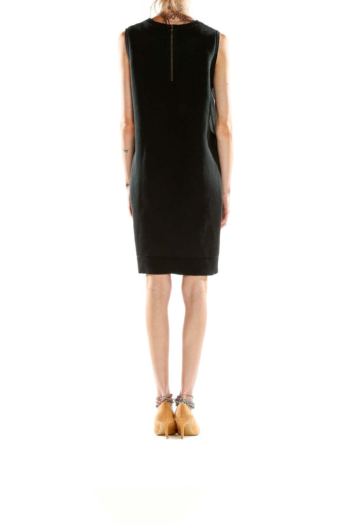 The dress features a relaxed fit through the body, making it perfect for both office wear and evening events. Its sleek design is complemented by subtle ribbed detailing at the neckline and armholes, adding a touch of texture to the overall look. The excellent condition of this garment ensures you'll look polished and put-together every time you wear it.