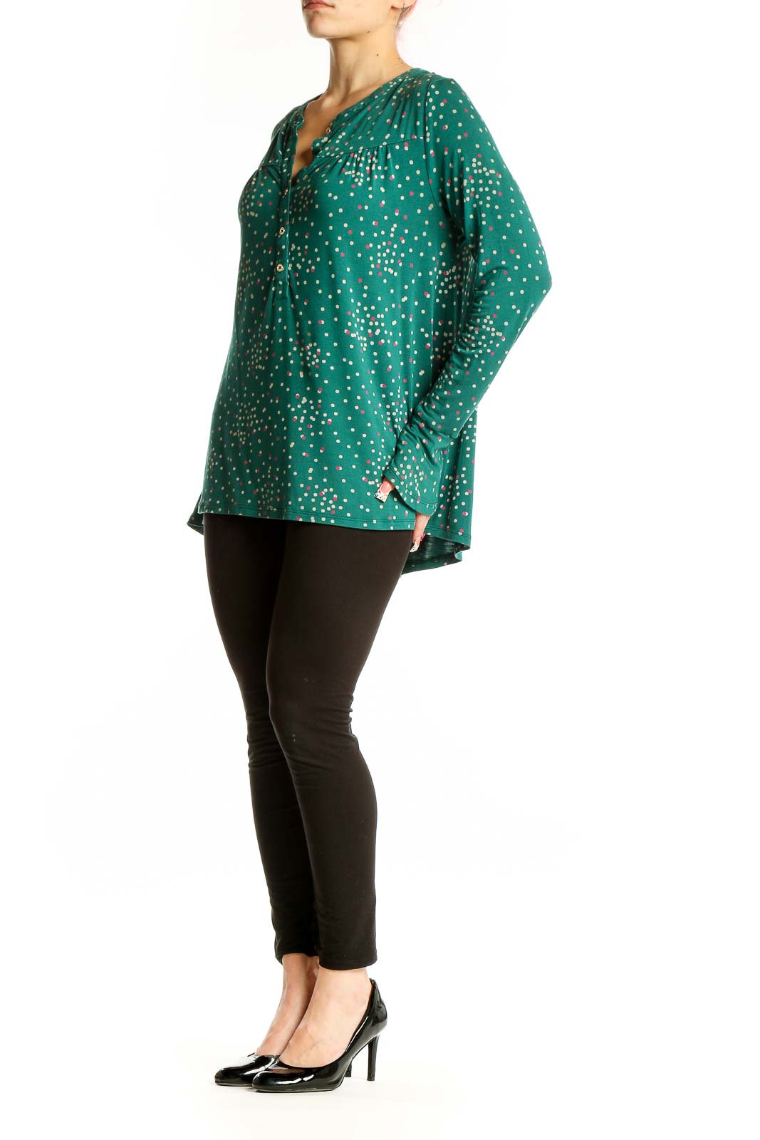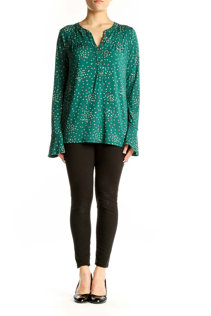 Elevate your wardrobe with this charming green polka dot blouse from Boden. This eye-catching top features a playful all-over dot pattern in various colors, adding a whimsical touch to your outfit. The long bell sleeves and relaxed fit create a flattering silhouette suitable for various body types.