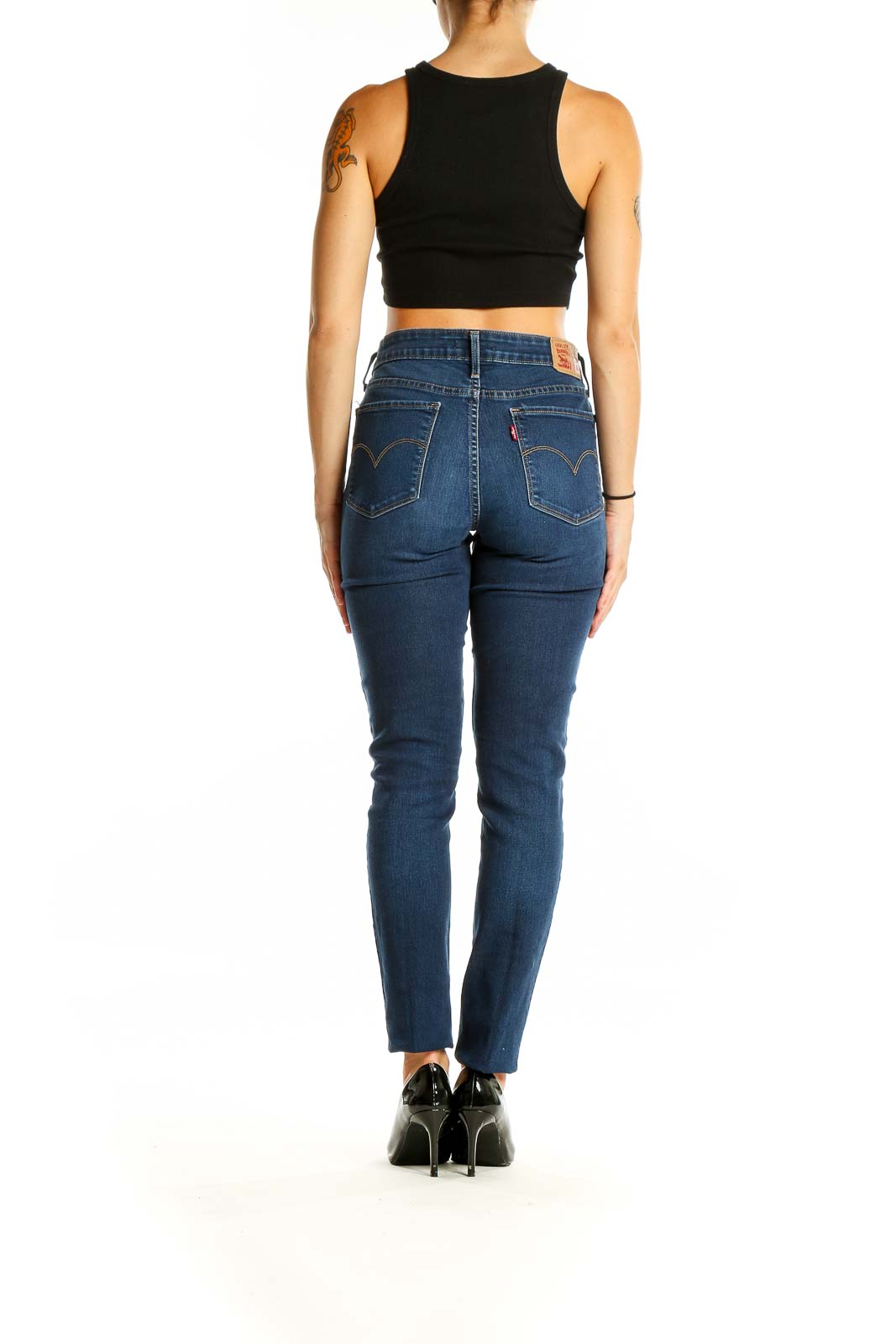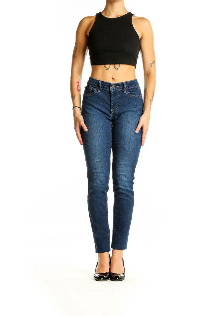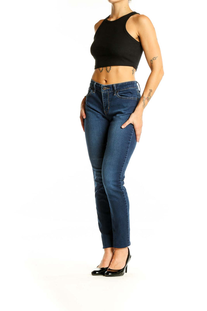 Step into timeless style with these classic blue straight leg jeans from Levi's. Crafted from high-quality cotton, these jeans offer both comfort and durability for everyday wear. The medium wash denim features subtle fading and whiskering, giving them a perfectly lived-in look. With a mid-rise waist and straight leg silhouette, these jeans flatter a variety of body types and pair effortlessly with any top in your wardrobe. The traditional five-pocket design and signature Levi's stitching on the back pockets add authentic detail to this wardrobe staple. In excellent condition, these jeans are ready to become your new go-to pair for both casual outings and slightly dressier occasions.