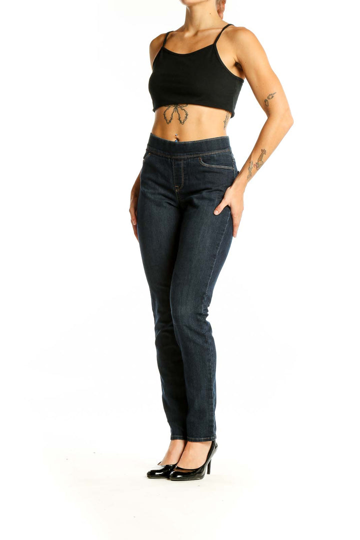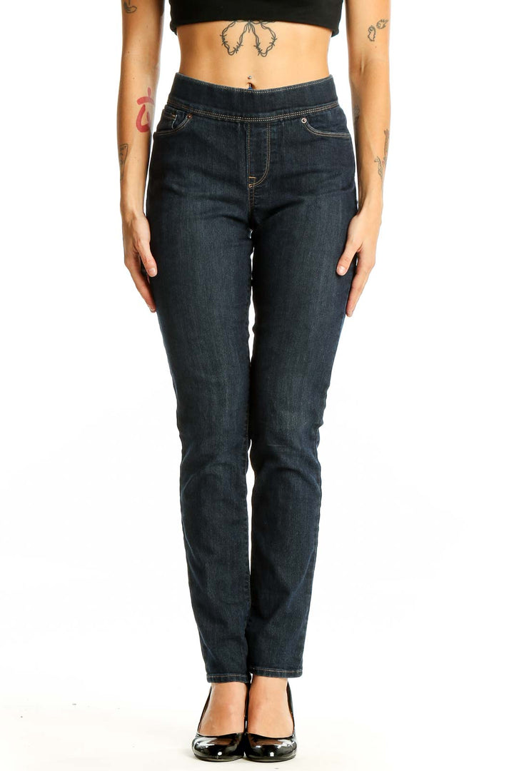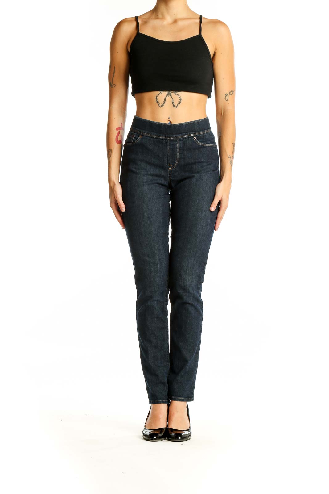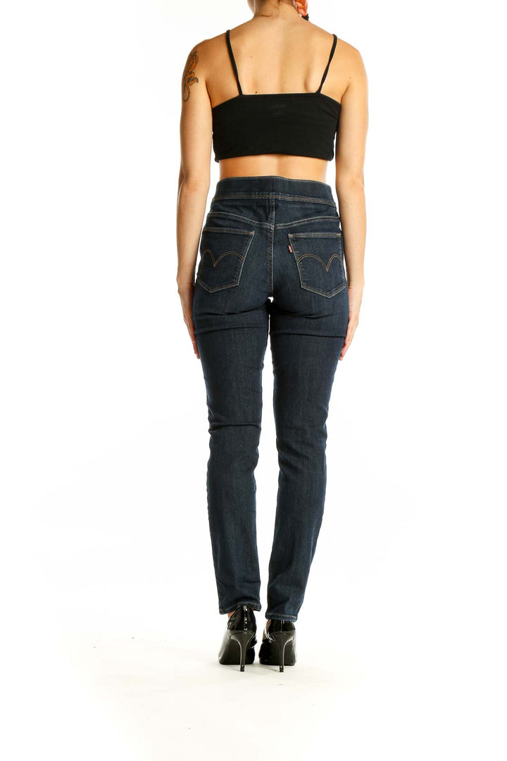Step into style with these sleek dark blue Levi's jeans. Crafted from a comfortable blend of cotton, elastane, and polyester, these slim fit jeans offer both durability and flexibility. The classic five-pocket design and subtle whiskering add a touch of timeless appeal. With a mid-rise waist and straight leg, these jeans create a flattering silhouette that's perfect for any casual occasion. The excellent condition ensures you'll look sharp wear after wear. Pair these versatile jeans with your favorite tops and shoes for a effortlessly chic look.