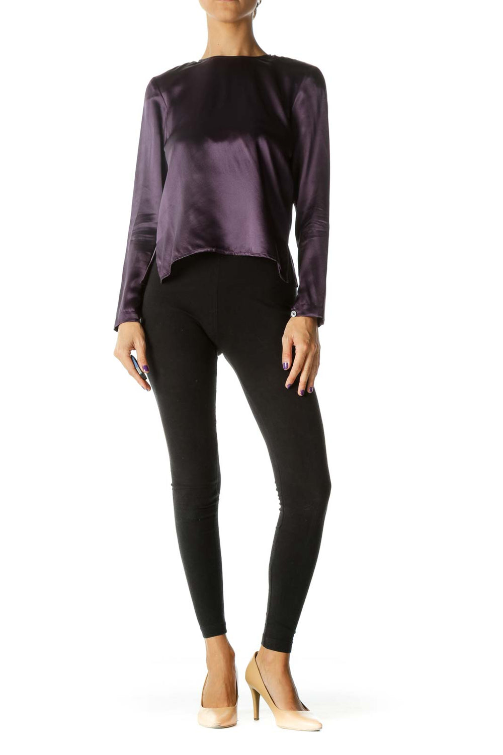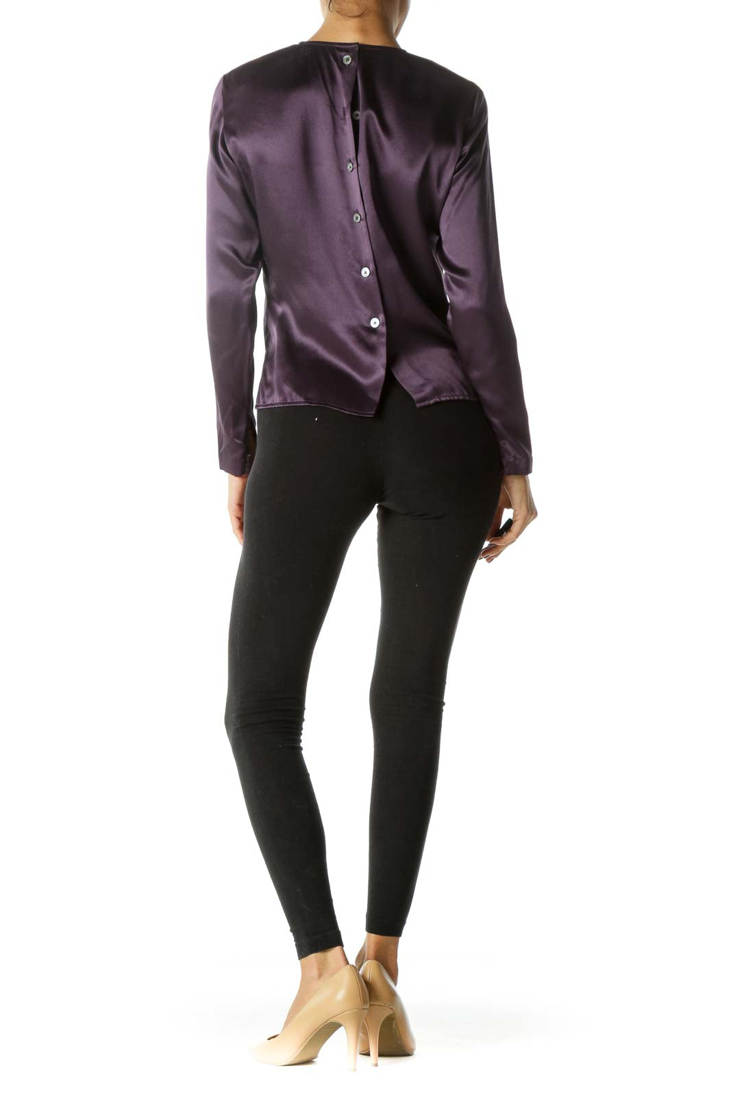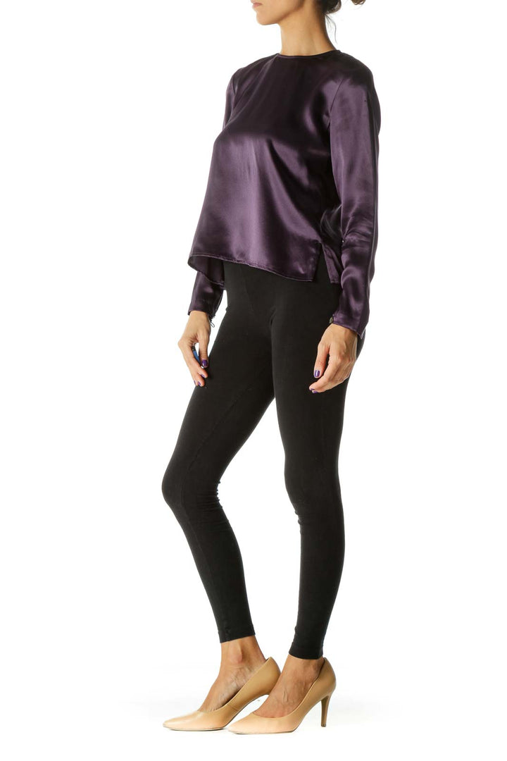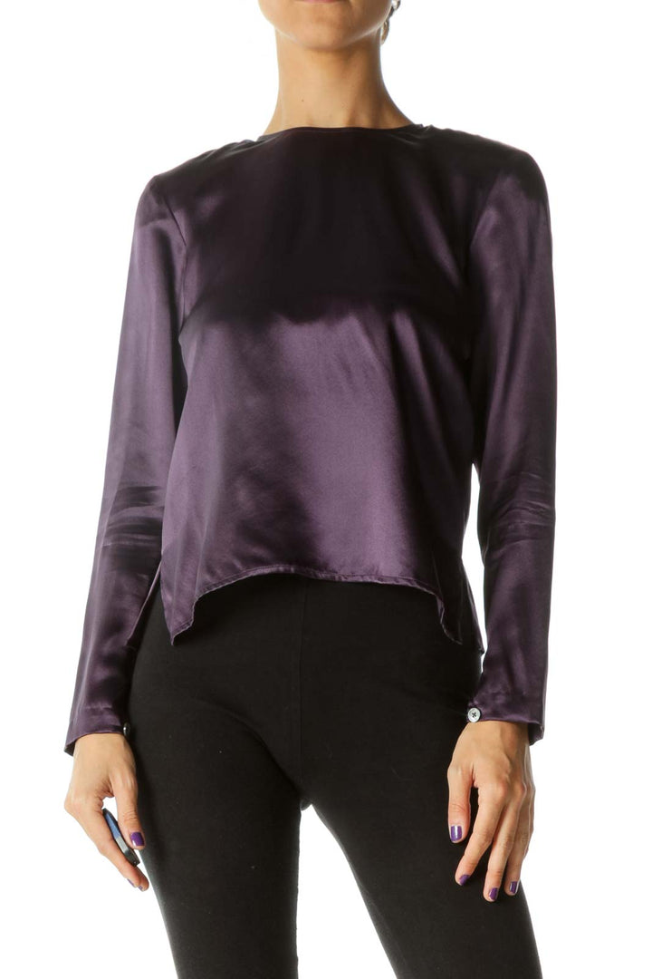 Purple 100% Silk Back Buttons Soft Shiny Top (Shoulder Pads)