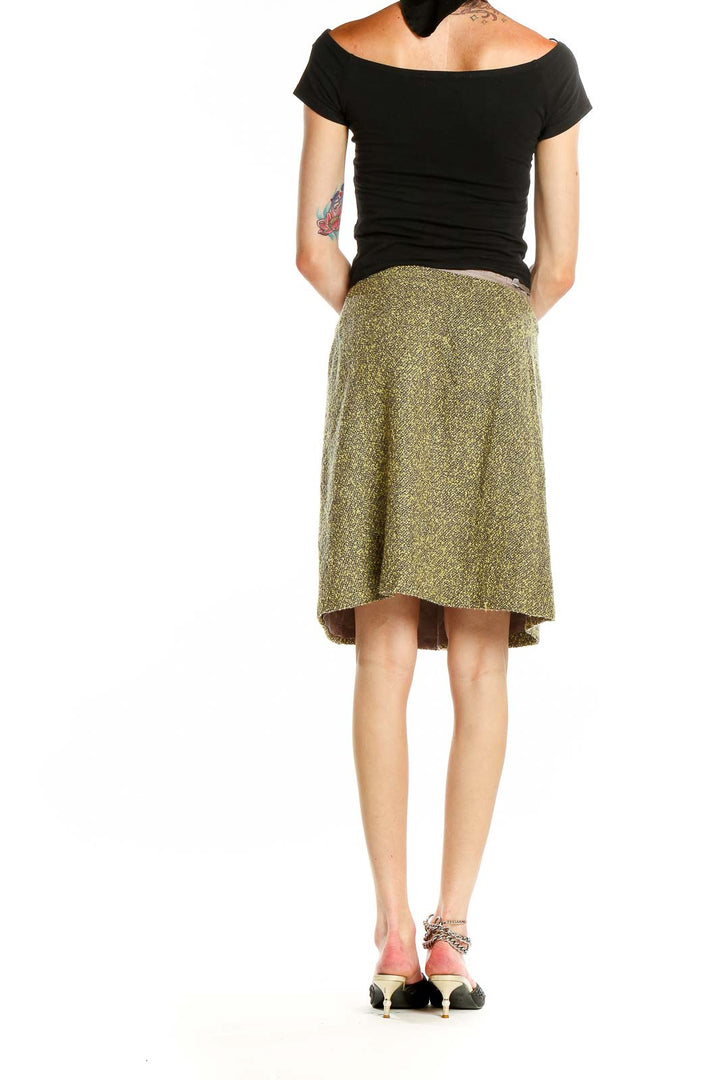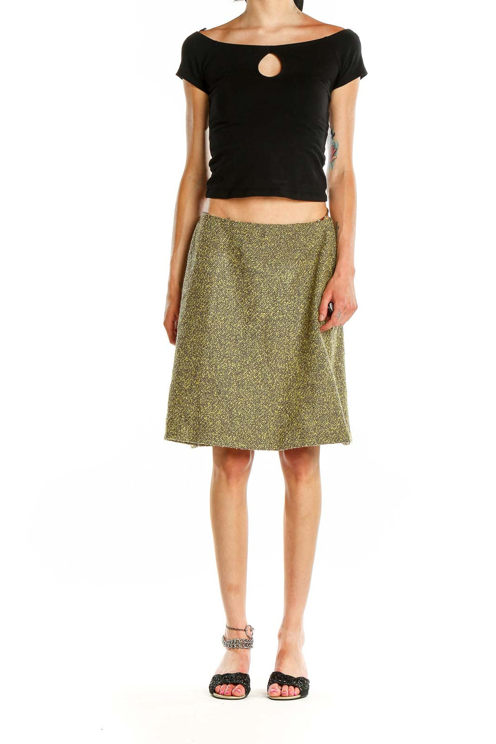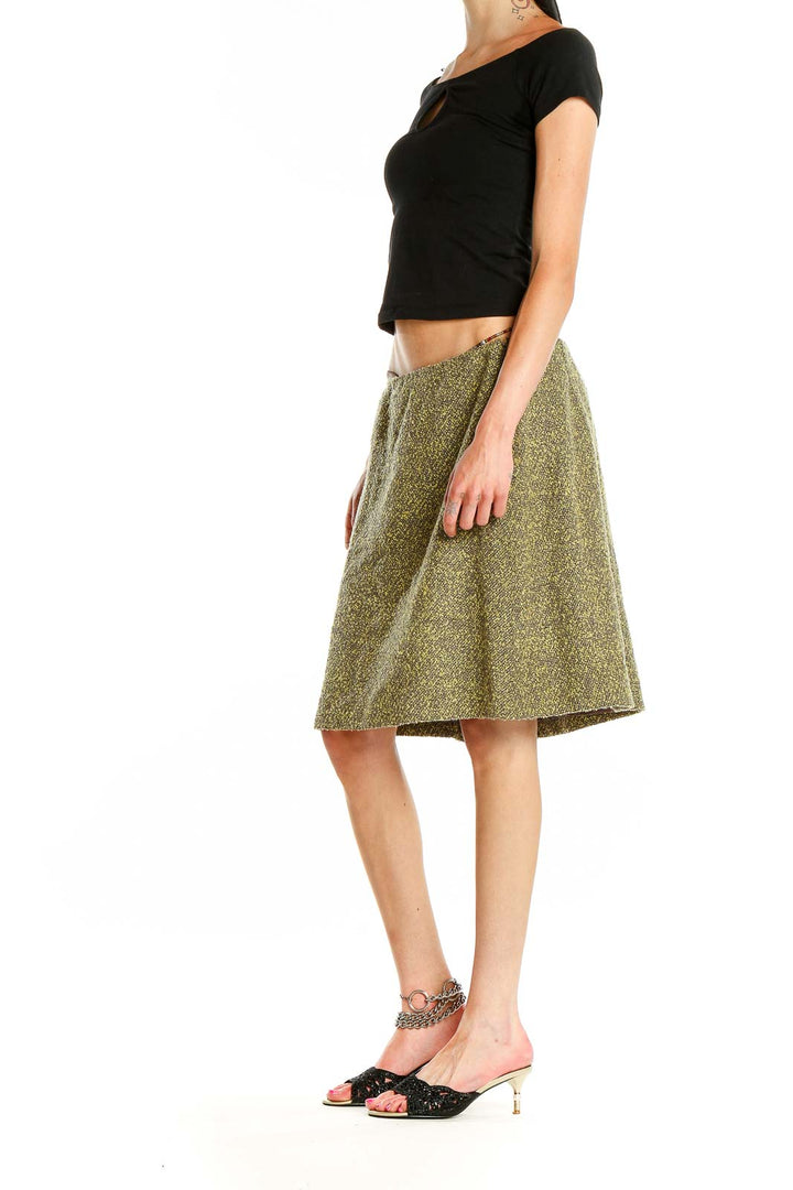 Step into timeless elegance with this stunning green tweed A-line skirt from Linda Allard Ellen Tracy. The rich, textured fabric showcases a beautiful blend of green and gold threads, creating a sophisticated and versatile piece perfect for both office wear and special occasions. The classic A-line silhouette flatters your figure while providing comfortable movement.