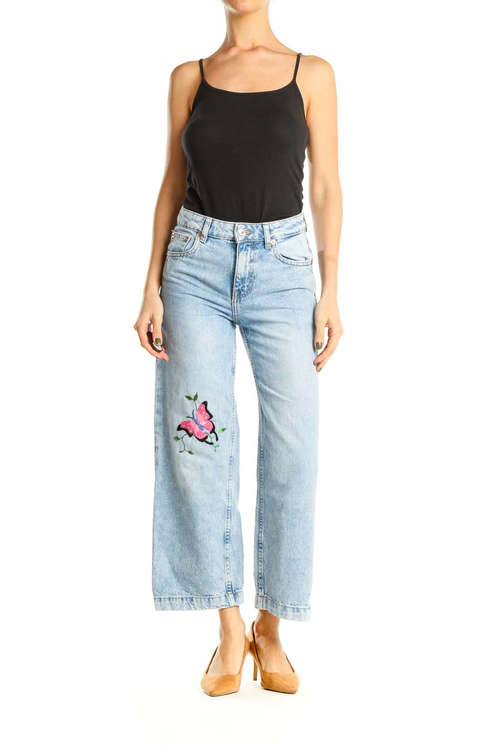Reworked: Blue Hand Embroidered Washed Denim with Butterfly Detail
