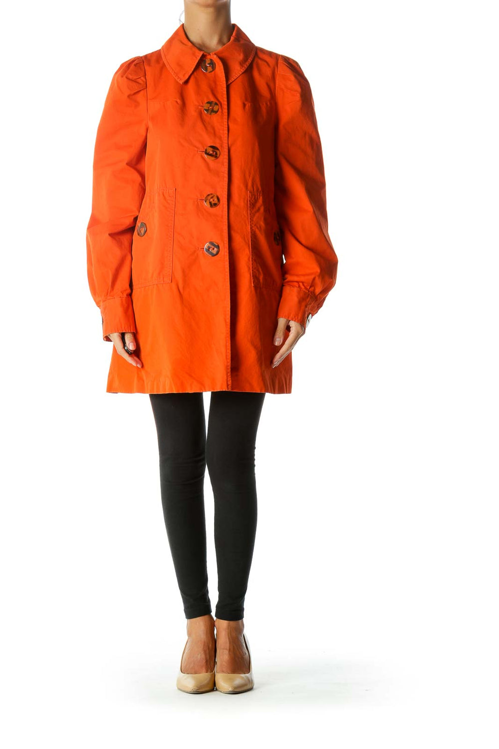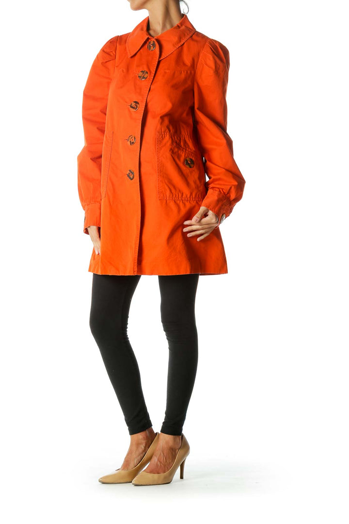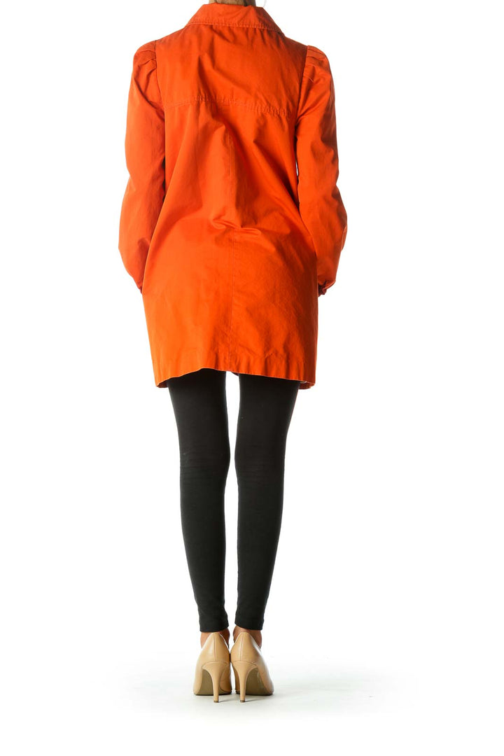 Orange Buttoned Pleated Detailing Pocketed Coat