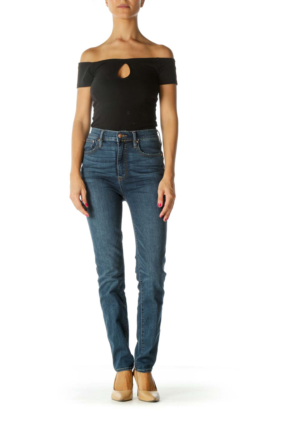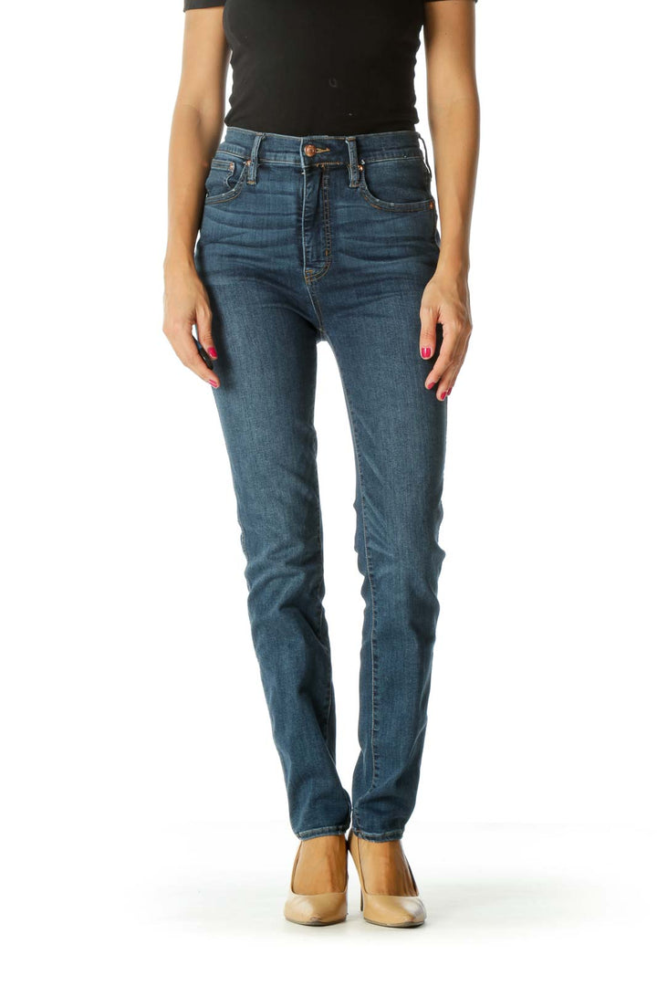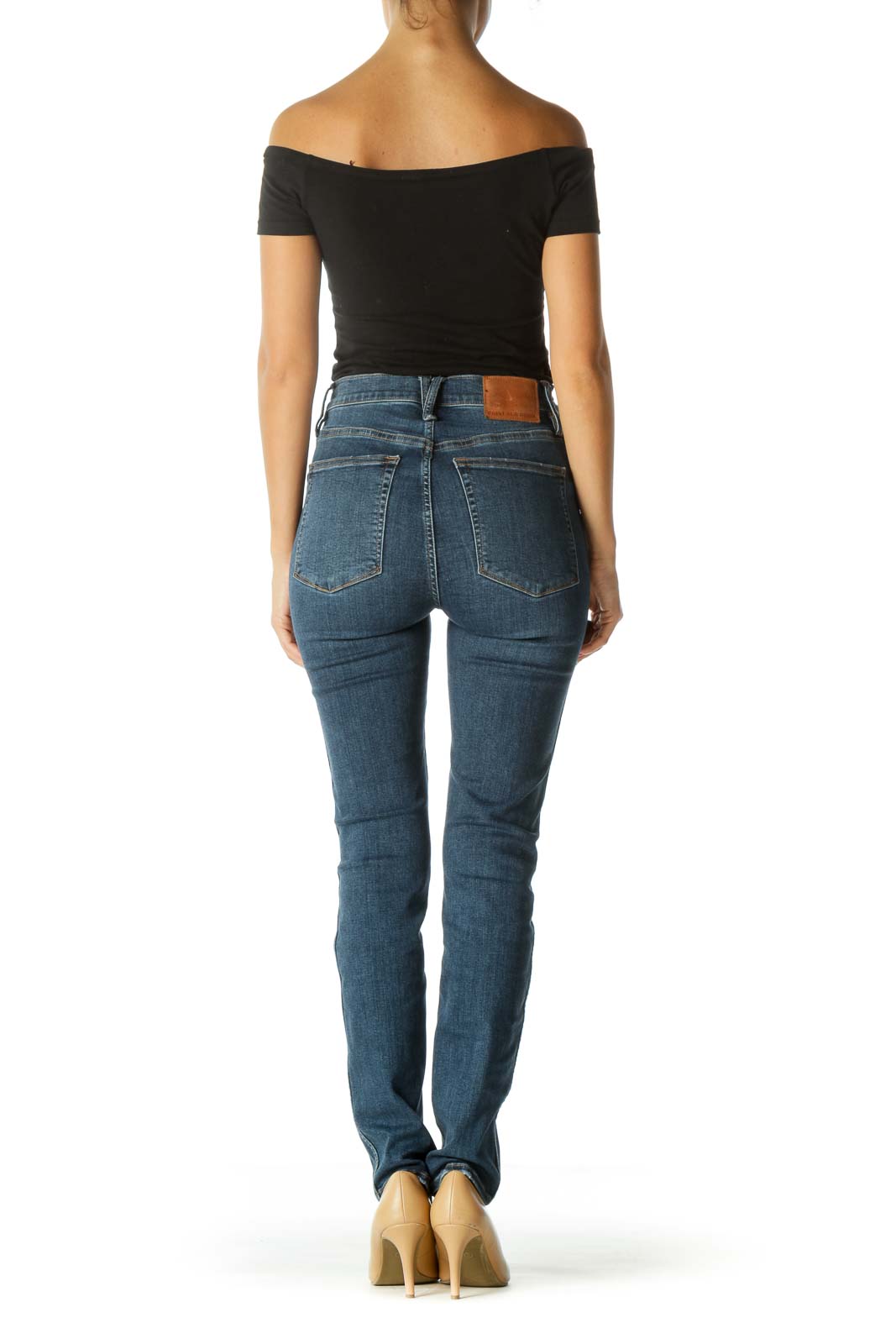 Blue Medium-Wash Distressed High-Waist Stretch Slim-Fit Jeans